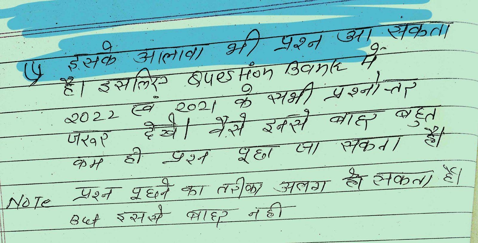 दोस्तों आप सभी को बता दे यहां पर पूरा क्वेश्चंस नहीं दिया जा रहा है लेकिन पीडीएफ अगर लेना चाहते थे इसके लिए आपको व्हाट्सएप ग्रुप ज्वाइन हो जाना है वहां से आपको पीडीएफ के रूप में सभी क्वेश्चन से मिल जाएगा लेकिन यहां पर जो प्रश्न दिया जा रहा है बिल्कुल उसे परीक्षा में पूछा ही जाएगा.