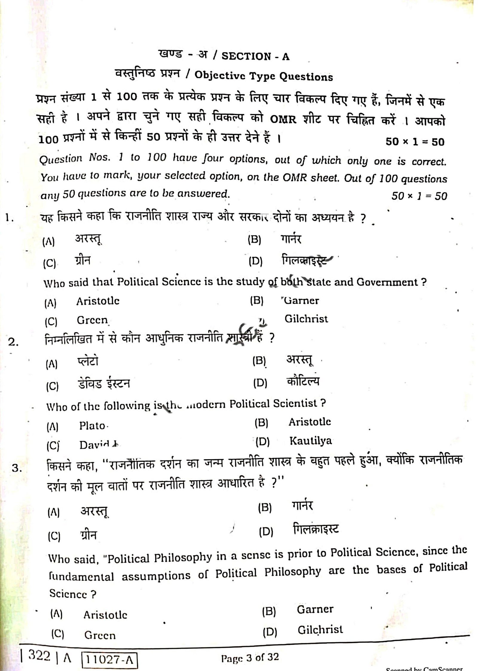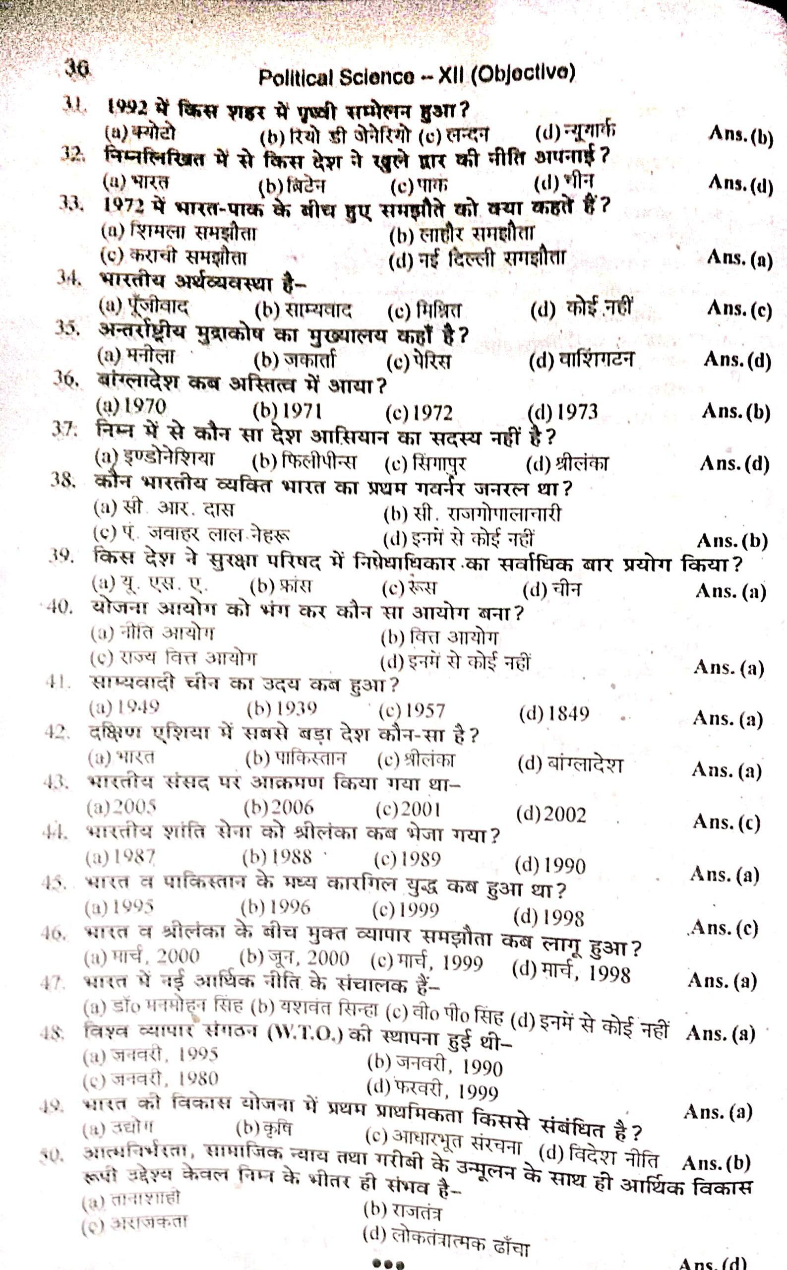 Bihar Board Intermediate Exam-, 2024 Political science Question