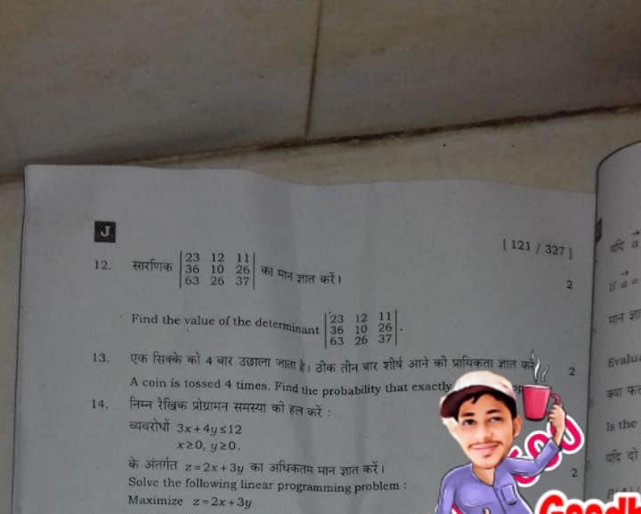 हेलो दोस्तों नमस्कार सही का स्वागत है। एक नये पोस्ट में आज बिहार बोर्ड इंटर परीक्षा में गणित और राजनीतिक शास्त्र का परीक्षा है । अर्थात Bihar Board Exam- 2024 Intermediate math and political science 2 फरवरी को गणित और राजनीतिक शास्त्र का परीक्षा लिया जा रहा है। इसमें कुछ क्वेश्चंस इस पोस्ट में आपको दिया जाएगा। जो बिल्कुल रूप से परीक्षा से मिलता रहेगा। अगर आप लोग गणित का परीक्षा अभी देने जा रहे हैं । फर्स्ट shift में यानी प्रथम पाली में तो मैथ के जो भी क्वेश्चंस दिया जाता है । उसे आप जरूर देखें इसके अलावा राजनीतिक विज्ञान में जो भी प्रश्न आपको दिया जाएगा। बिल्कुल रूप से वही सब प्रश्न आपकी परीक्षा में पूछा जाएगा सभी प्रश्न परीक्षा के लिए ही दिया गया है । अगर आप लोग सीरियसली परीक्षा में अच्छा अंक लाना चाह रहे हैं। तो पूरा पोस्ट को पढ़े और सभी क्वेश्चंस को जरूर देखकर जाएं ।ऑब्जेक्टिव कुछ देर बाद इस पोस्ट में अपडेट किया जाएगा तो परीक्षा से कुछ देर पहले भी यहां आकर आप लोग अवश्य देखें ।बिल्कुल ओरिजिनल प्रश्न भी मिल जाएगा।