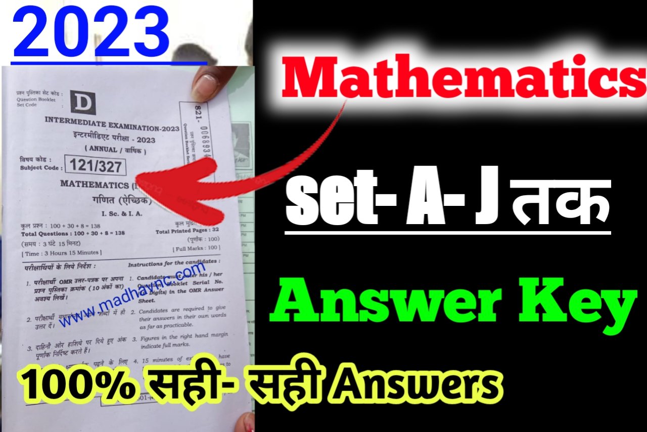12th Mathematics set- A to J Answers Key 2023 download biharboard Exam 2023