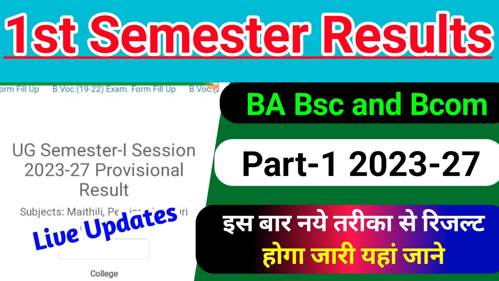 स्नातक प्रथम सेमेस्टर सत्र 2023-27 का परीक्षा समाप्त हो चुका है रिजल्ट जारी होना बचा हुआ है रिजल्ट में अभी विलंब हो रही है कारण यह के लोकसभा चुनाव है अभी रिजल्ट में थोड़ा विलंब हो सकती है