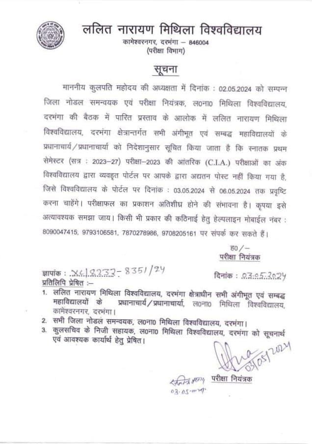 इसे आप कैसे चेक कर सकते हैं ?यह भी जानकारी आपको इस पोस्ट में दी जाएगी साथ ही साथ मिथिला यूनिवर्सिटी अर्थात ललित नारायण मिथिला यूनिवर्सिटी स्नातक 4 वर्षीय फर्स्ट सेमेस्टर रिजल्ट कब होगा जारी ?