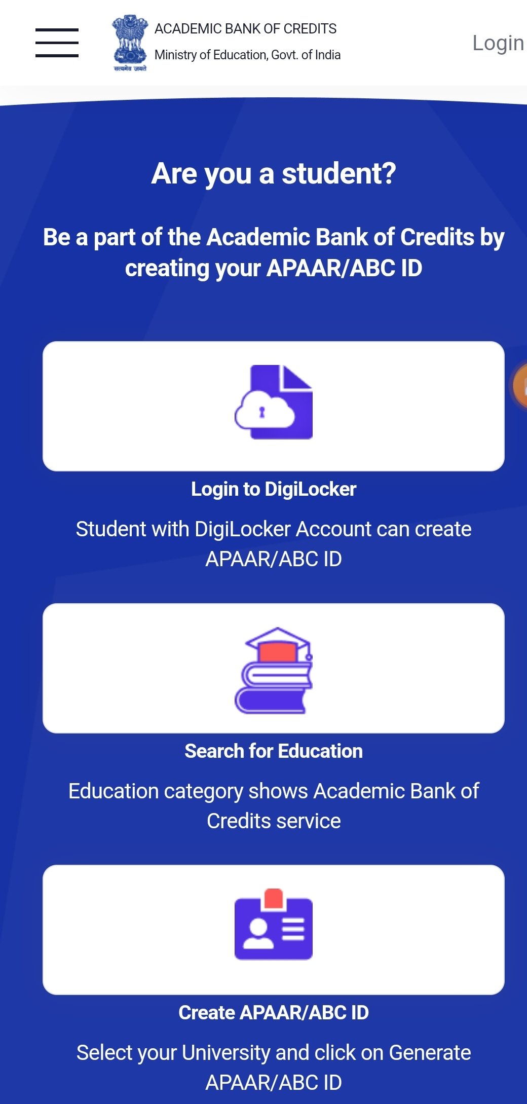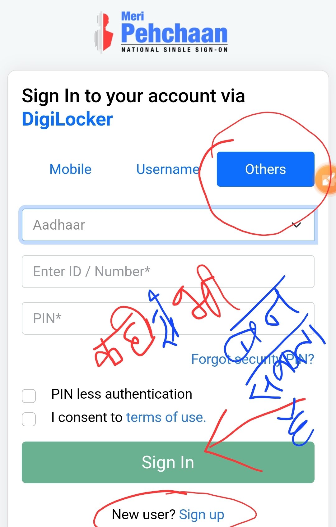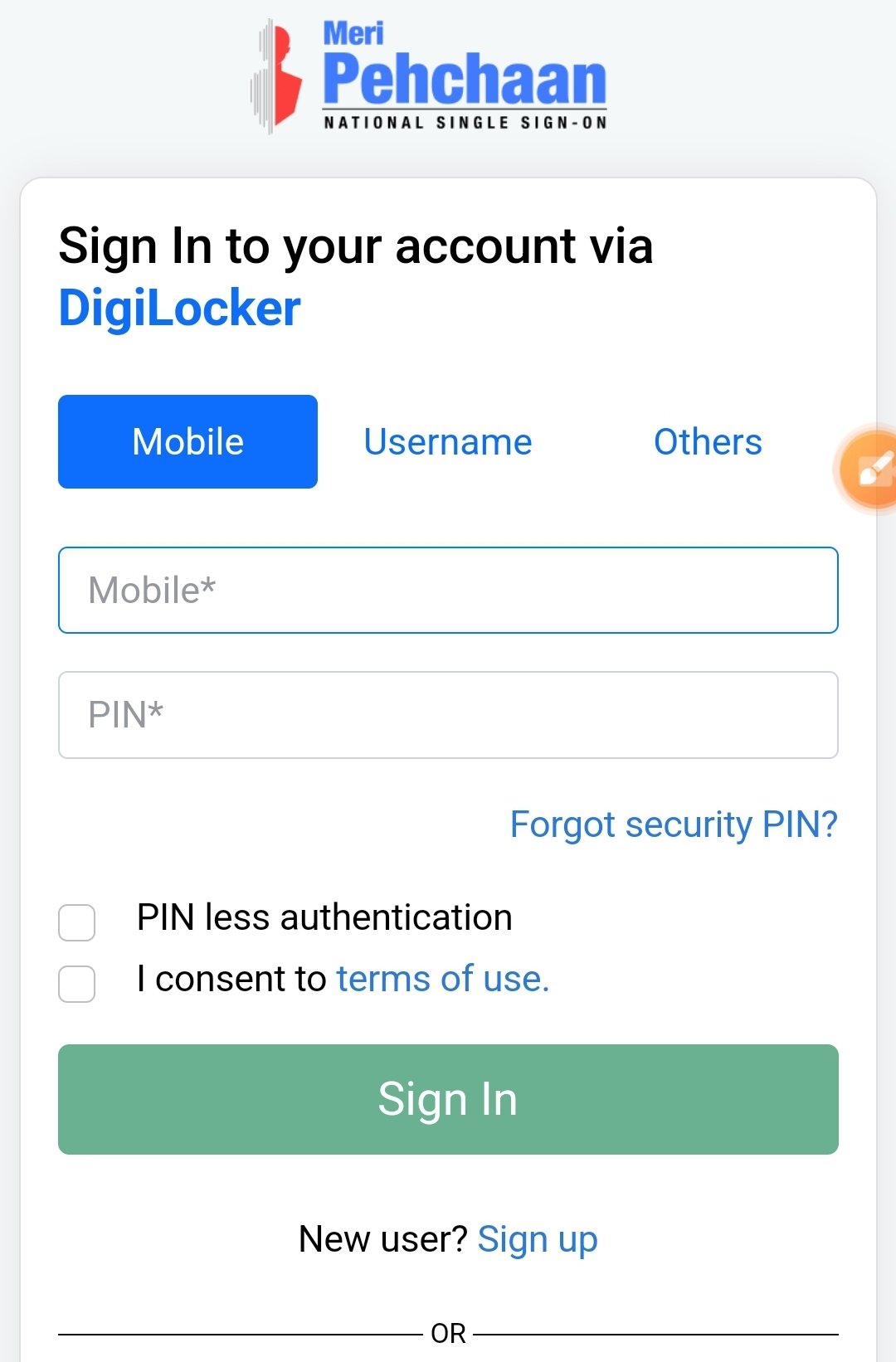 ➡️फिर आपके सामने मोबाइल नंबर और pin मांगा जाएगा ,अगर आप पहले से एबीसी कार्ड बन चुके हैं, तो आप वहां से लॉगिन कर सकते हैं, डायरेक्ट देकर के या आप ➡️Digilocker लॉकर से अकाउंट बना चुके हैं, तो भी आप वहां पर लॉगिन हो सकते हैं|