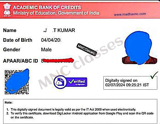 तो उनका इंतजार रहता है, कि आखिर एबीसी कार्ड क्या होता है ?और कैसा होता है ?तो आप लोगों के लिए डेमो यहां पर हमने दे दिया है नीचे में नीचे जो दिया गया है| यह एबीसी कार्ड है |जो तत्काल बनाया गया है |और उसका फोटो आप लोग को दिखाया जा रहा है |कुछ इस तरह से ही आप लोग का भी एबीसी अर्थात एकेडमिक बैंक आफ क्रेडिट कार्ड बनेगा जब भी आप कार्ड बनवाएं ,तो आप देखने के नीचे जिस तरह से दिया गया है |उसे तरह का कार्ड आपका बनता है, या फिर नहीं बनता है, ओरिजिनल के लिए QR को स्कैन करके चेक भी कर सकते हैं|