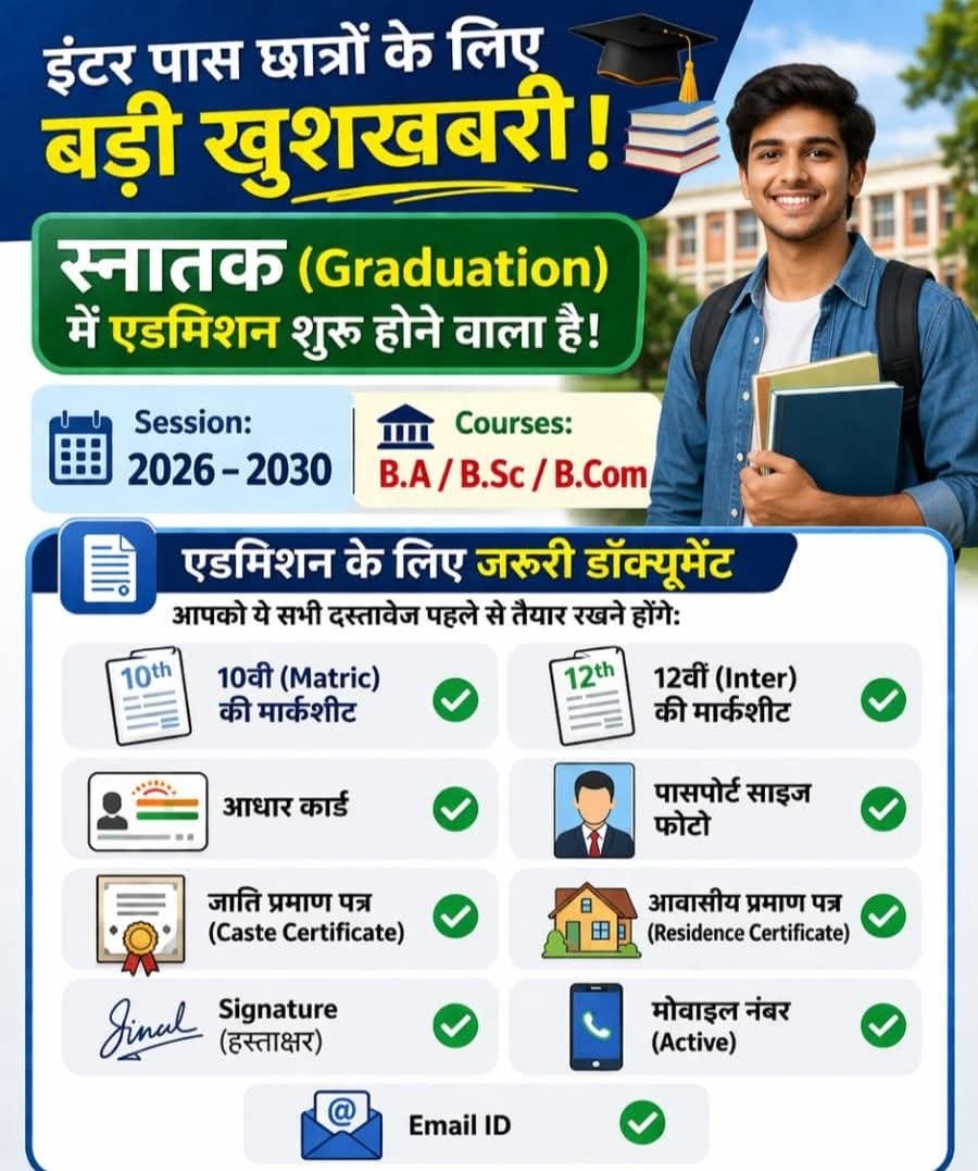 नमस्कार साथियों अगर आप इंटर पास कर लिए इस साल और ग्रेजुएशन में नामांकन लेना चाहते हैं | तो यह आर्टिकल आपके लिए है | नामांकन से पहले आपको कौन-कौन सा प्रक्रिया करना है ,और कौन-कौन सा डॉक्यूमेंट तैयार रखना है | क्योंकि नाम लिखने से पहले आपको ऑनलाइन करना होगा ऑनलाइन करने के बाद क्या प्रोसेस होता है? उसे प्रक्रिया के बारे में पूरी डिटेल्स जानकारी आपको इस आर्टिकल में मिलने वाले हैं |