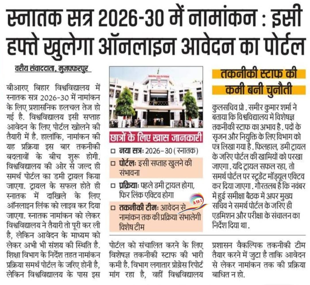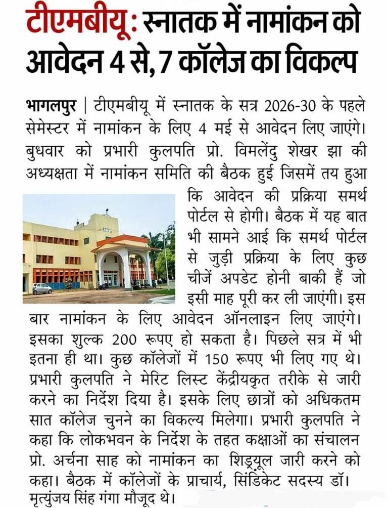 वैसा ही आपको बता दे तिलकामांझी यूनिवर्सिटी में भी मुंगेर यूनिवर्सिटी में भी brabu यूनिवर्सिटी में भी मगध यूनिवर्सिटी में भी तो इन तमाम यूनिवर्सिटी में एडमिशन जल्द ही शुरू हो रहा है |