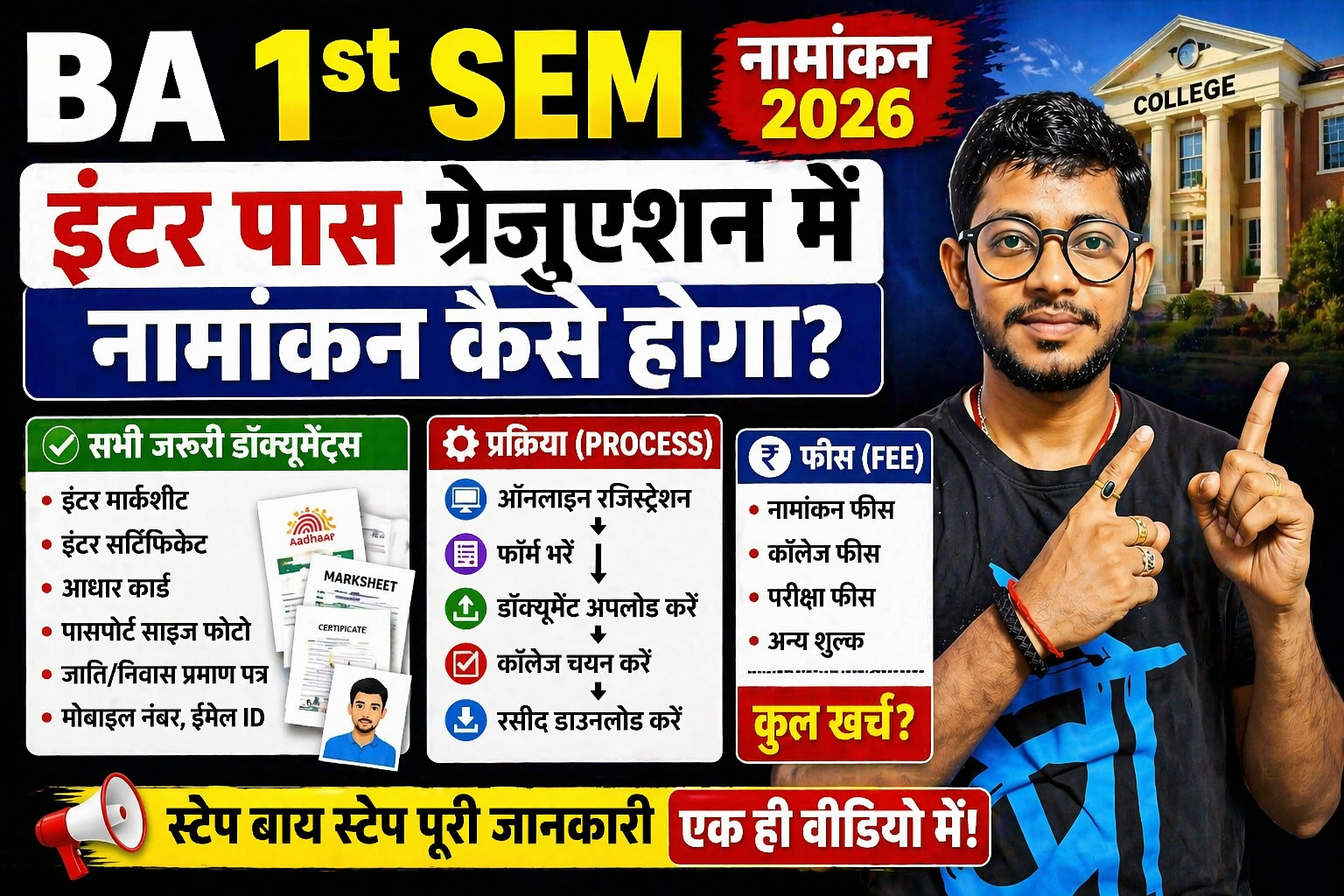 BA 1st Sem नामांकन 2026 🔥 | इंटर पास Graduation में Admission कैसे होगा? | Documents, Process, Fee Full Guide