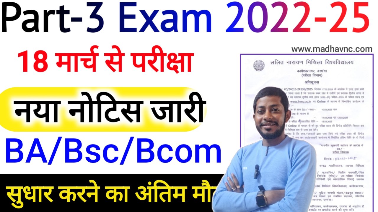 BA Part-3 Exam 2022-25 | LNMU Part-3 Exam Shedual Out | Part-3 Exam Form भरने एवं सुधार करने के लिए फिर से लिंक जारी