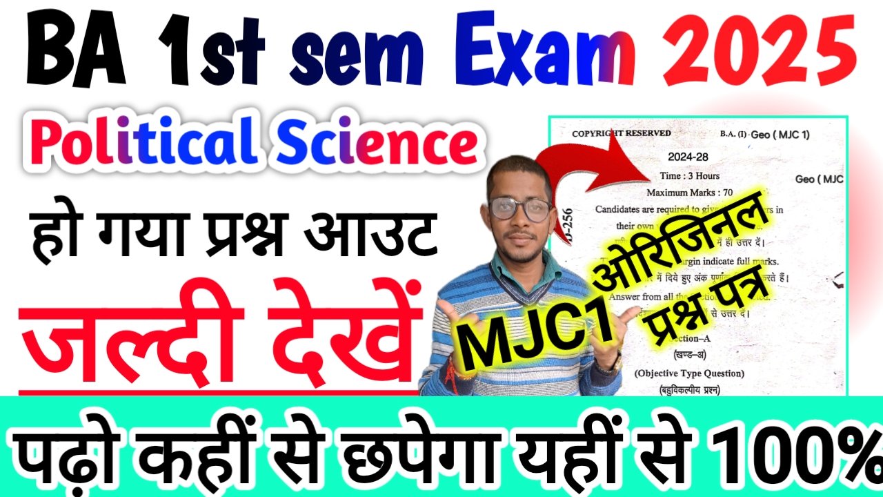 BA Political Science MJC 1 Viral Questions 1st Semester Exam 2024-28 | lnmu 1st Sem Political Science Questions Papper,