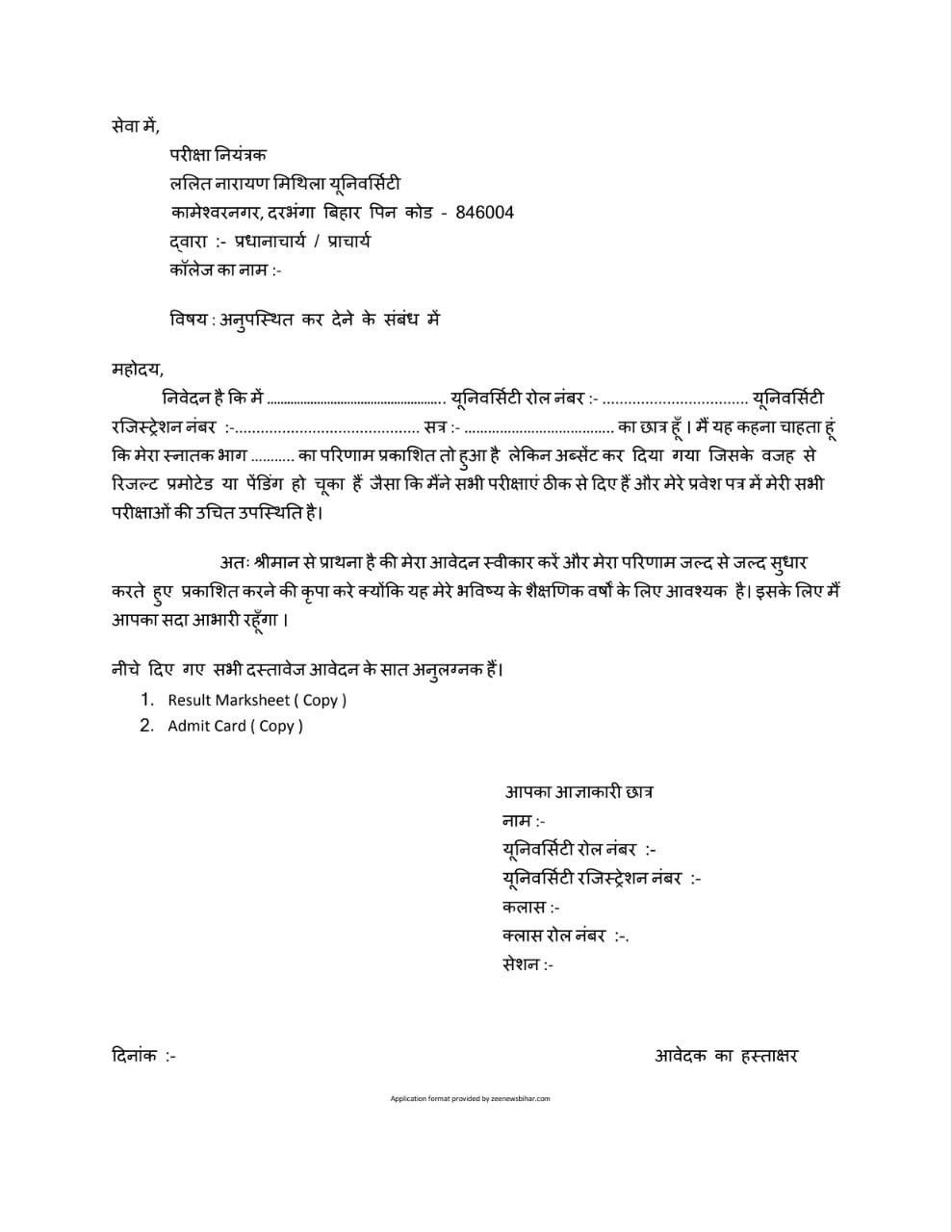 आप सभी के जानकारी के लिए बता दें अगर आपका रिजल्ट पेंडिंग है या प्रमोटेड है या किसी भी प्रकार की दिक्कत है अगर आप उसे सुधार करना चाहते |हैं तो आपको नीचे बताए गए आवेदन की तरह एप्लीकेशन लिखना होगा | यह एप्लीकेशन आपको लिख करके जो भी कागज आपको बताया जाता है उसे लगा करके आप अपना रिजल्ट सुधार करवा सकते हैं रिजल्ट सुधार करवाने के लिए आपको कॉलेज या यूनिवर्सिटी जाना पड़ सकता है|