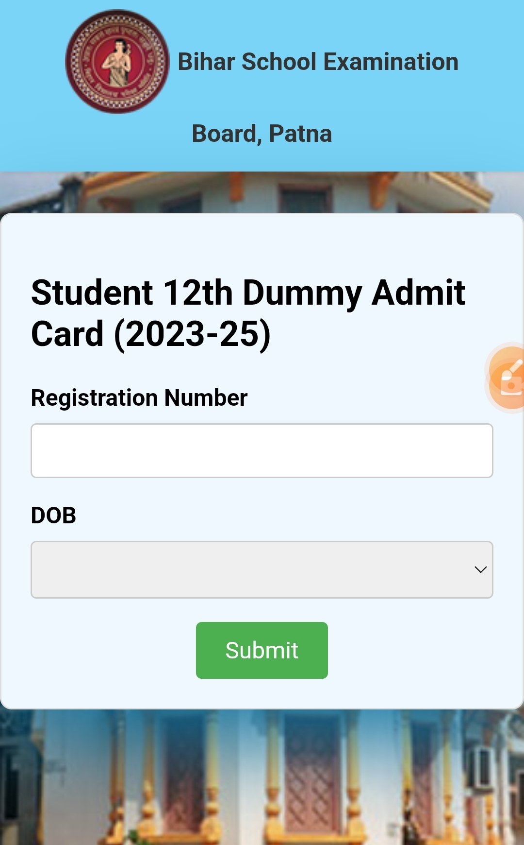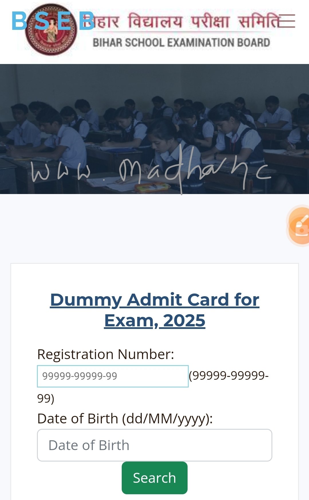 > विद्यार्थी द्वारा Dummy Admit Card डाउनलोड करने की प्रक्रिया सभी विद्यार्थी अपने सूचीकरण संख्या एवं जन्म तिथि का प्रयोग करते हुए समिति की वेबसाईट http://ssonline.biharboardonline.com/studentDummyadmit card.aspx