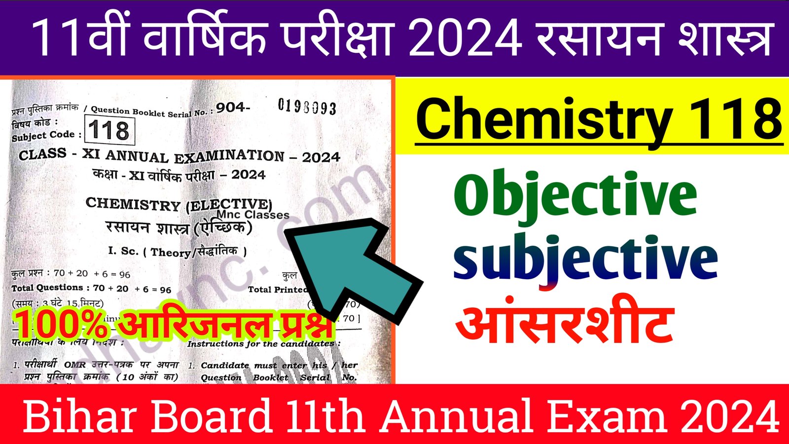 Bihar Board 11th Annual Exam Chemistry Original Question Papper 2024 :- बिहार बोर्ड 11वीं कक्षा फाइनल परीक्षा रसायन शास्त्र ओरिजिनल क्वेश्चन पेपर यहां देखें