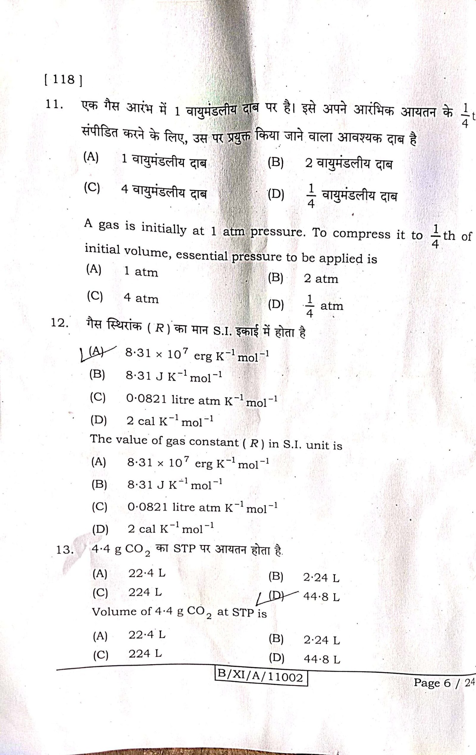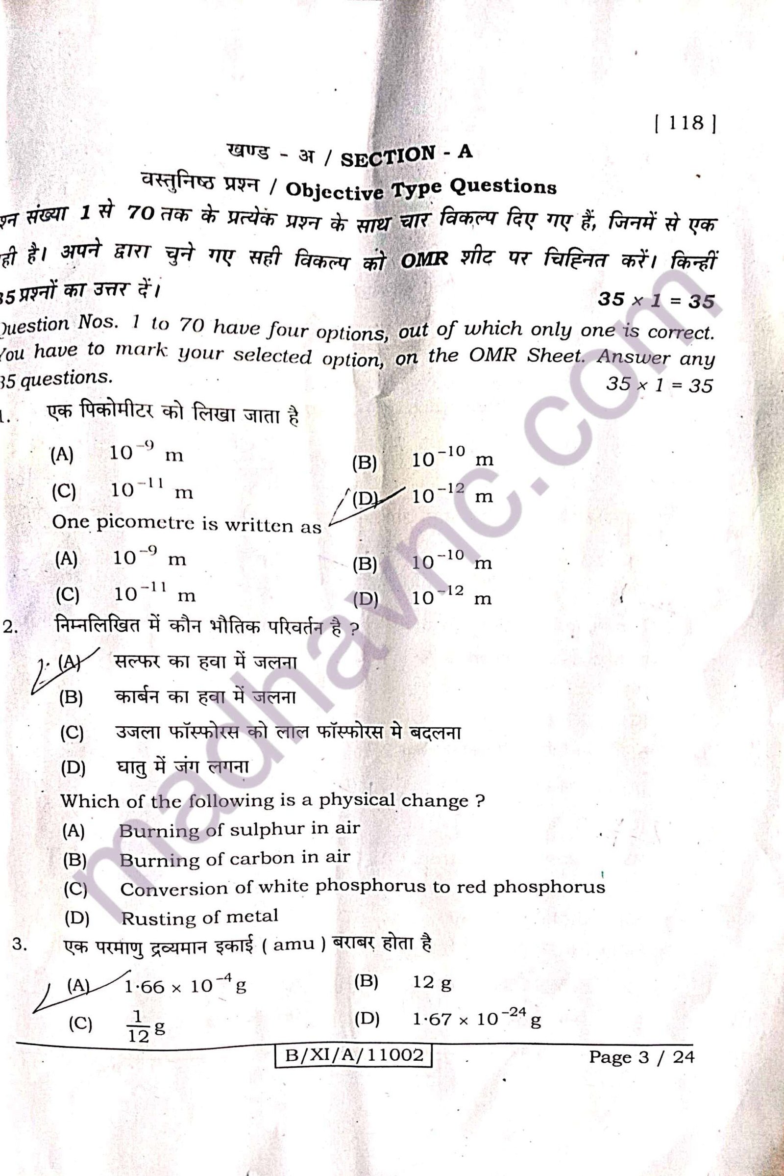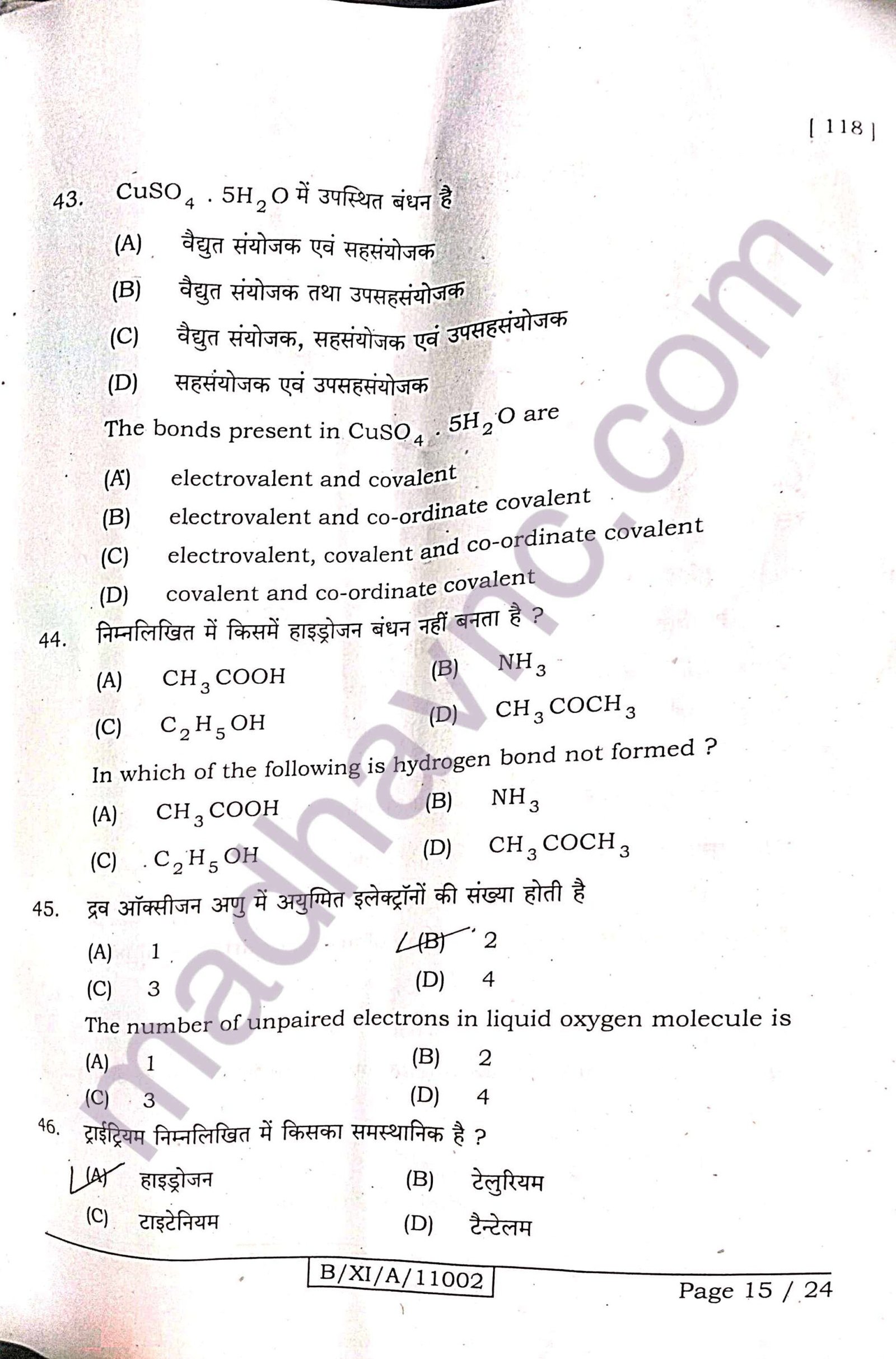 बिहार बोर्ड 11वीं कक्षा फाइनल परीक्षा रसायन शास्त्र ओरिजिनल क्वेश्चन पेपर यहां देखें