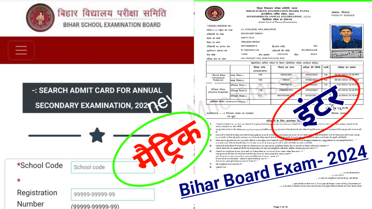 Bihar Board Admit Card Download Link- 2024 || बिहार बोर्ड परीक्षा इंटरमीडिएट, मैट्रिक फाइनल एडमिट कार्ड हो गया जारी इस नए लिंक से चेक करें