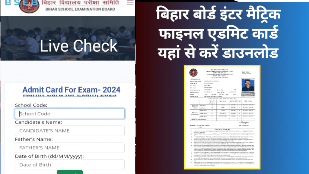 Bihar Board Exam- 2024 Final Admit Card Download New Link- Active ;- बिहार बोर्ड मैट्रिक इंटर फाइनल एडमिट कार्ड छात्र खुद से करें डाउनलोड नया लिंक जारी