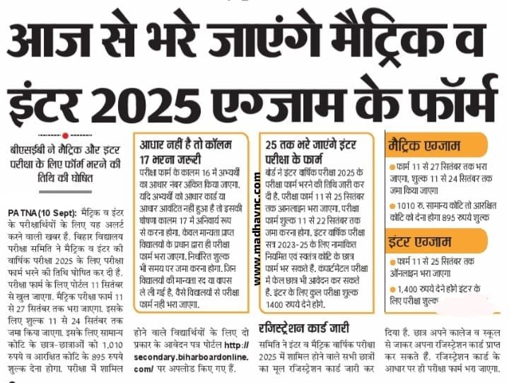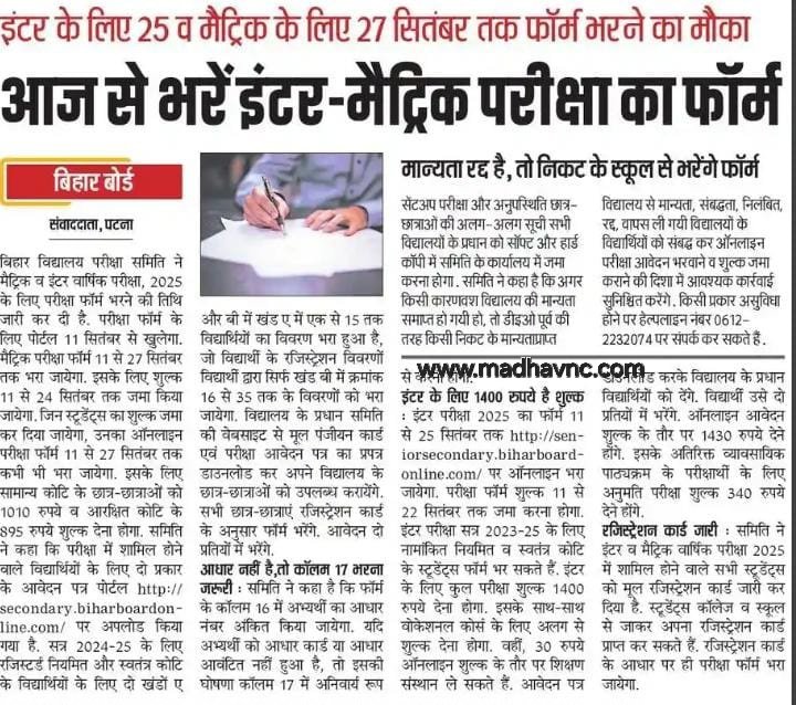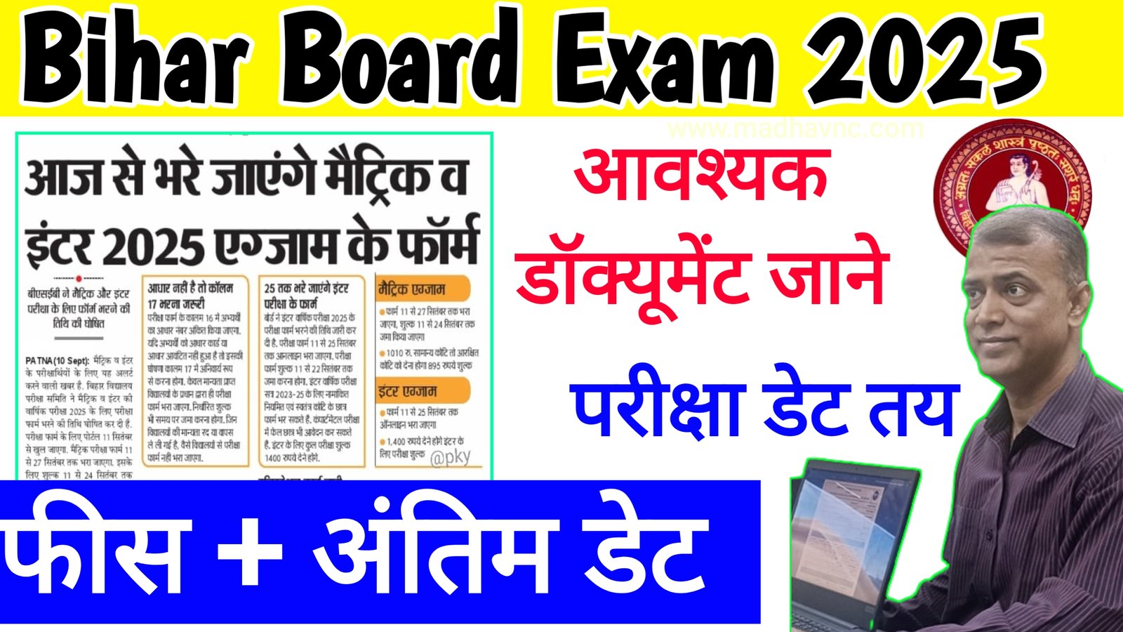 Bihar Board Exam 2025 | आज से मैट्रिक इंटर परीक्षा फॉर्म भरे जाएंगे | 10th 12th Exam form Fill up start Leave a Comment / 10th class english guess paper 2023, 10th class english important questions 2023, Admission update, Admit card, bihar board 10th question bank 2023, bihar board class 10th question bank 2023, BSEB Updates, class 10th 2023 guess paper pdf download, Class 11th, Class 12th, Class 9th, guess paper 10th class 2023 sindh board, Latest Update, Online Process / By MNC Classes Bihar Board Exam 2025 | आज से मैट्रिक इंटर परीक्षा फॉर्म भरे जाएंगे | 10th 12th Exam form Fill up start आज से मैट्रिक इंटर परीक्षा फॉर्म भरे जाएंगे | 10th 12th Exam form Fill up start Bihar Board – Matric Inter Board Exam- मे किस बुक से अधिक प्रश्न पूछा जाता है, Model Papper से कितने प्रश्न पूछा जाएगा Bseb Exam- 2024 Bihar Board – Matric Inter Board Exam- मे किस बुक से अधिक प्रश्न पूछा जाता है, Model Papper से कितने प्रश्न पूछा जाएगा Bseb Exam- 2024