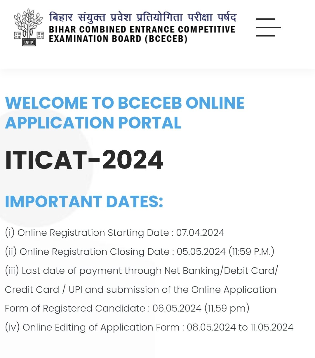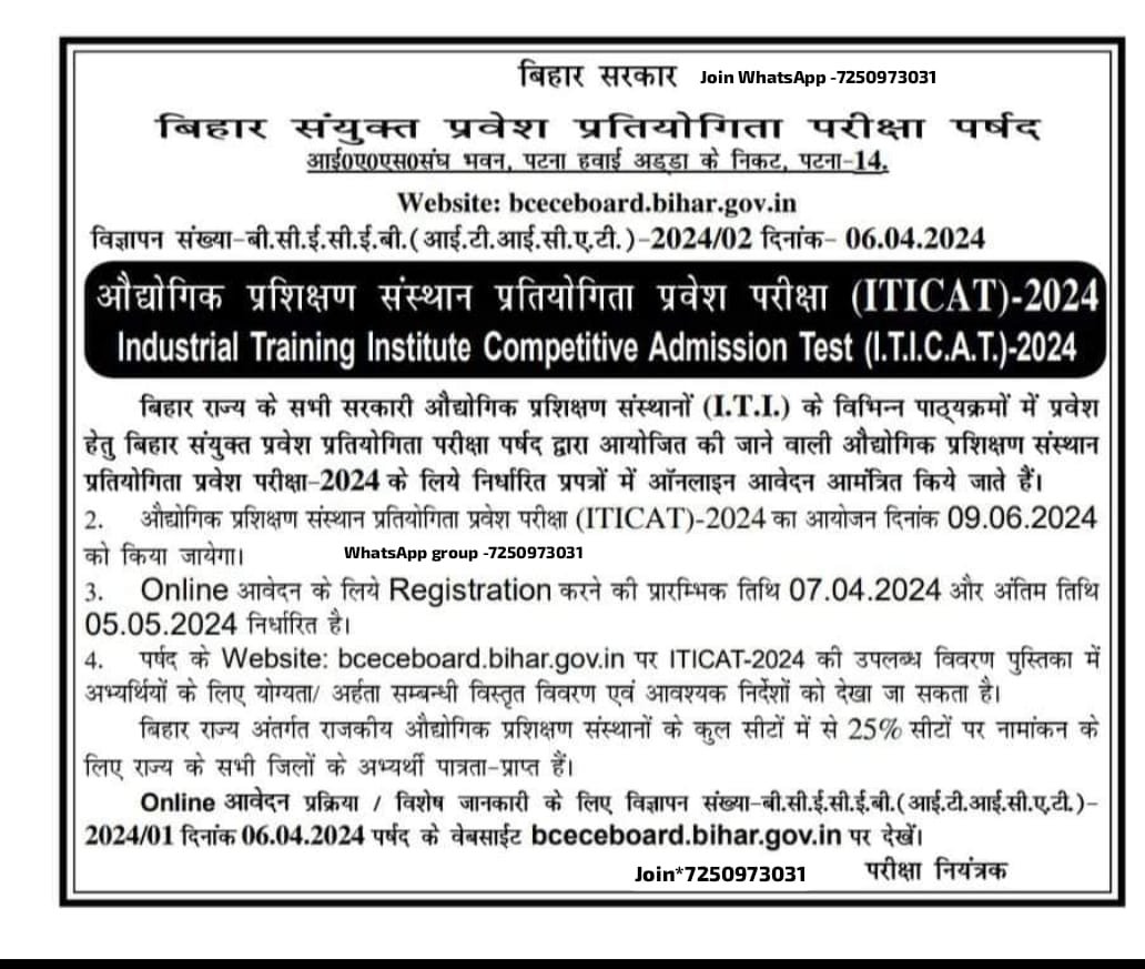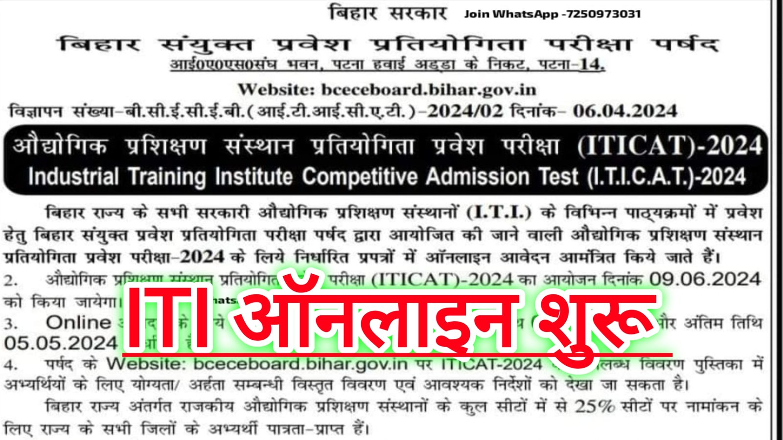 Bihar ITI Entrance Exam 2024 Online Apply Start Overviews