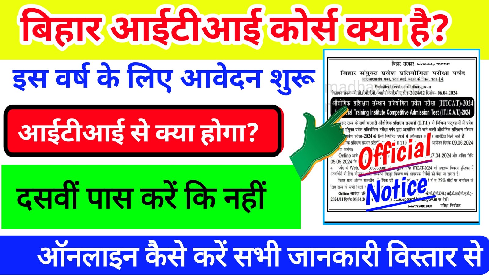 Bihar ITI Online Apply Start 2024 : 10वीं पास आईटीआई करने के लिए आवेदन शुरू ,जाने इसके बारे में सभी जानकारी
