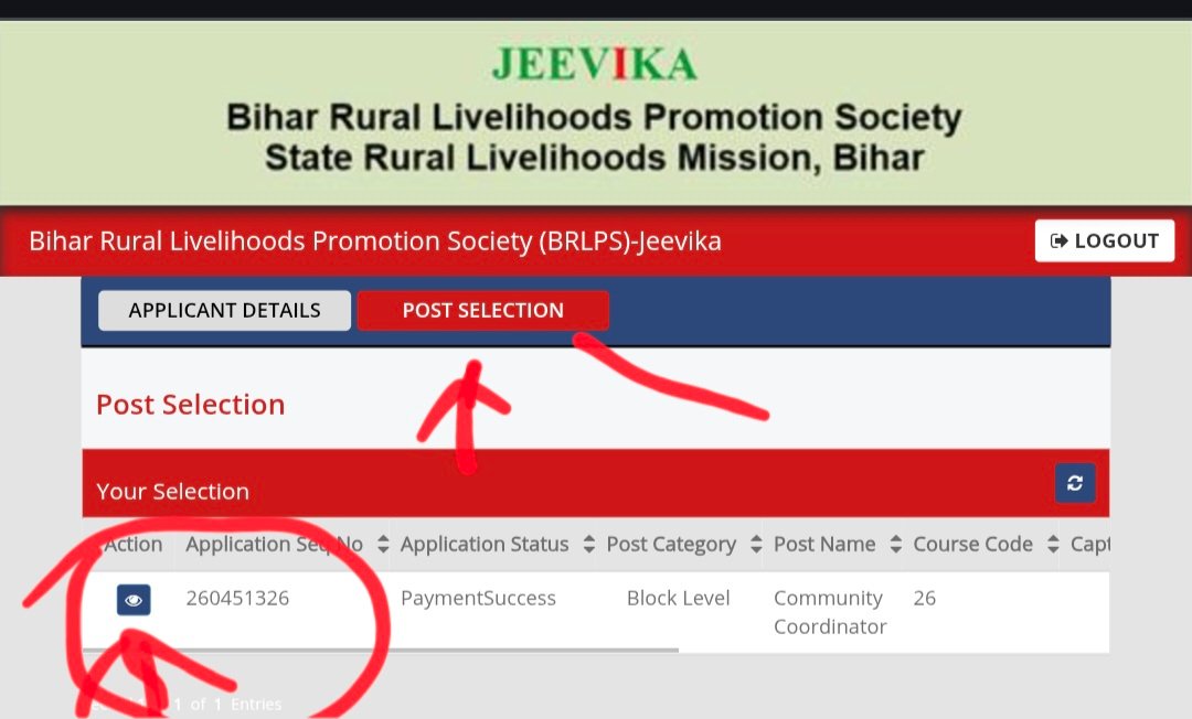 एक्शन के नीचे आंख का बटन होगा उसे पर क्लिक करना है, क्लिक करने के बाद ऊपर देखेंगे , तो एप्लीकेशन स्टेटस और बगल में आंसर की दिखने लगेगा वहां से आप आंसर की मिलकर देख सकते हैं ,कि