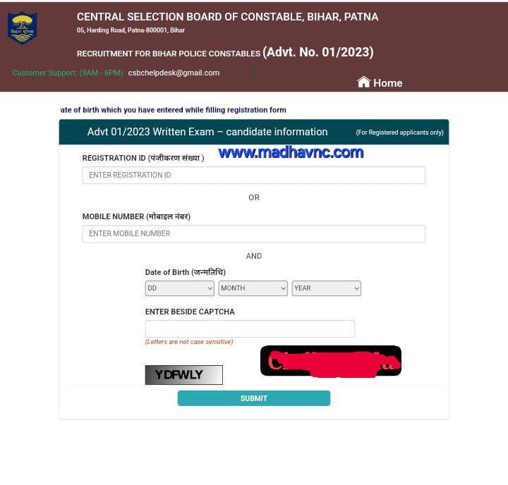 इसमें ध्यान रखने योग्य बातें होगा कि मोबाइल नंबर आपको वही देना है | जो आपने परीक्षा फॉर्म भरते समय दिए थे, अर्थात् बिहार Police परीक्षा के लिए ऑनलाइन जब आवेदन कर रहे थे, तो उसे समय जो भी आप मोबाइल नंबर दिए हैं |