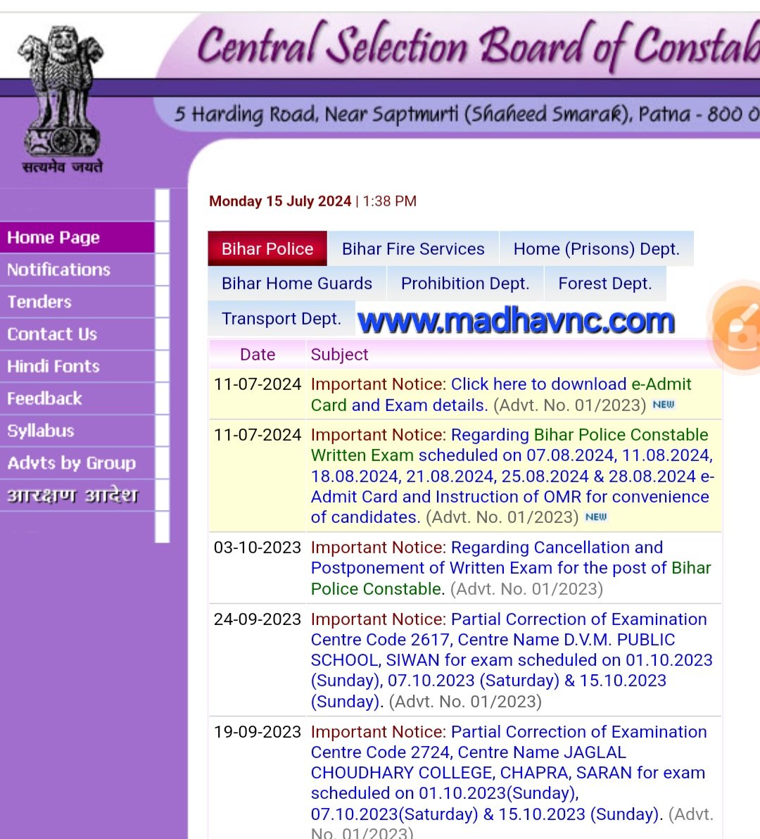 वही जानकारी के लिए बता दे- बिहार पुलिस परीक्षा अब अगस्त में होने वाली है |इसके लेकर ऑफिशल वेबसाइट पर भी अपडेट कर दी गई है| और ऑफिशियल सूचना भी जारी कर दी गई है|