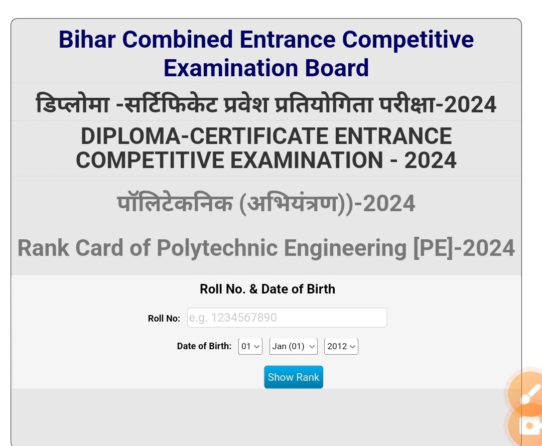 बिहार पॉलिटेक्निक प्रवेश परीक्षा रिजल्ट जारी कर दिया गया है ,स्कोर कार्ड डाउनलोड करने के लिए-