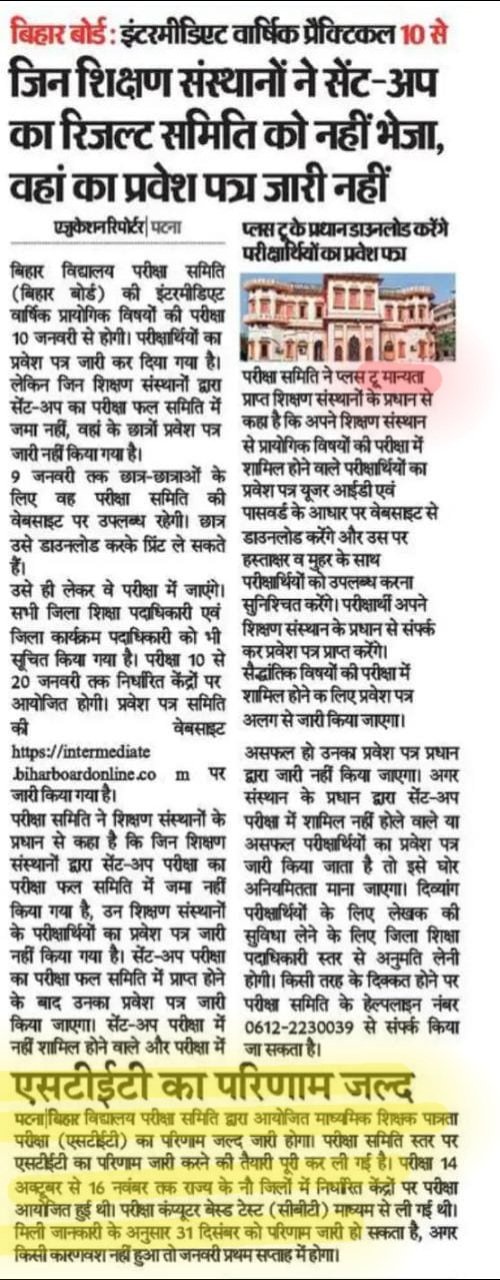बिहार स्टेट रिजल्ट लेकर आयी बड़ी खबर |