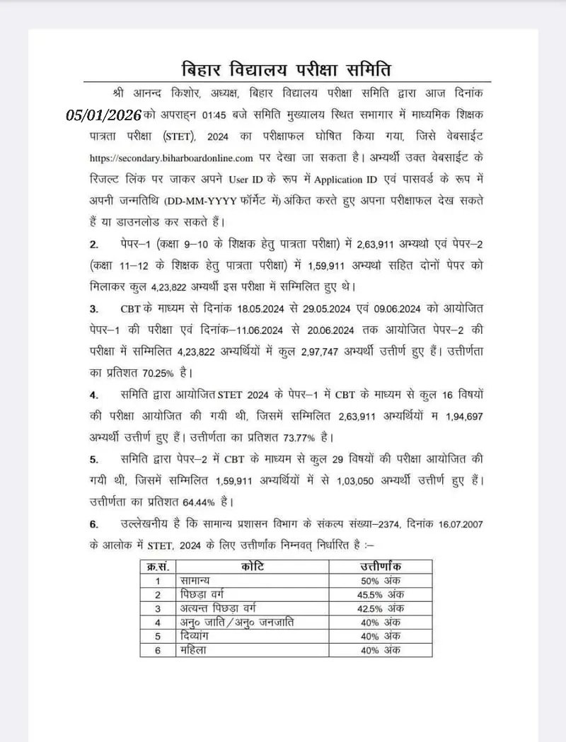 Bihar STET रिजल्ट जारी कितने छात्र फेल हुए कितने पास यहां देखें