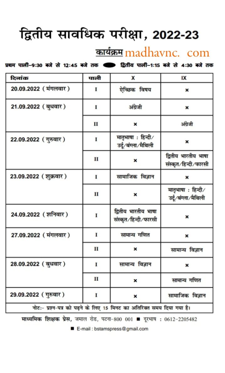 बिहार बोर्ड मैट्रिक एवं नवमी कक्षा में अध्ययनरत सभी छात्र छात्राओं को 2nd टर्मिनल परीक्षा उसके विद्यालय में लिया जाएगा।