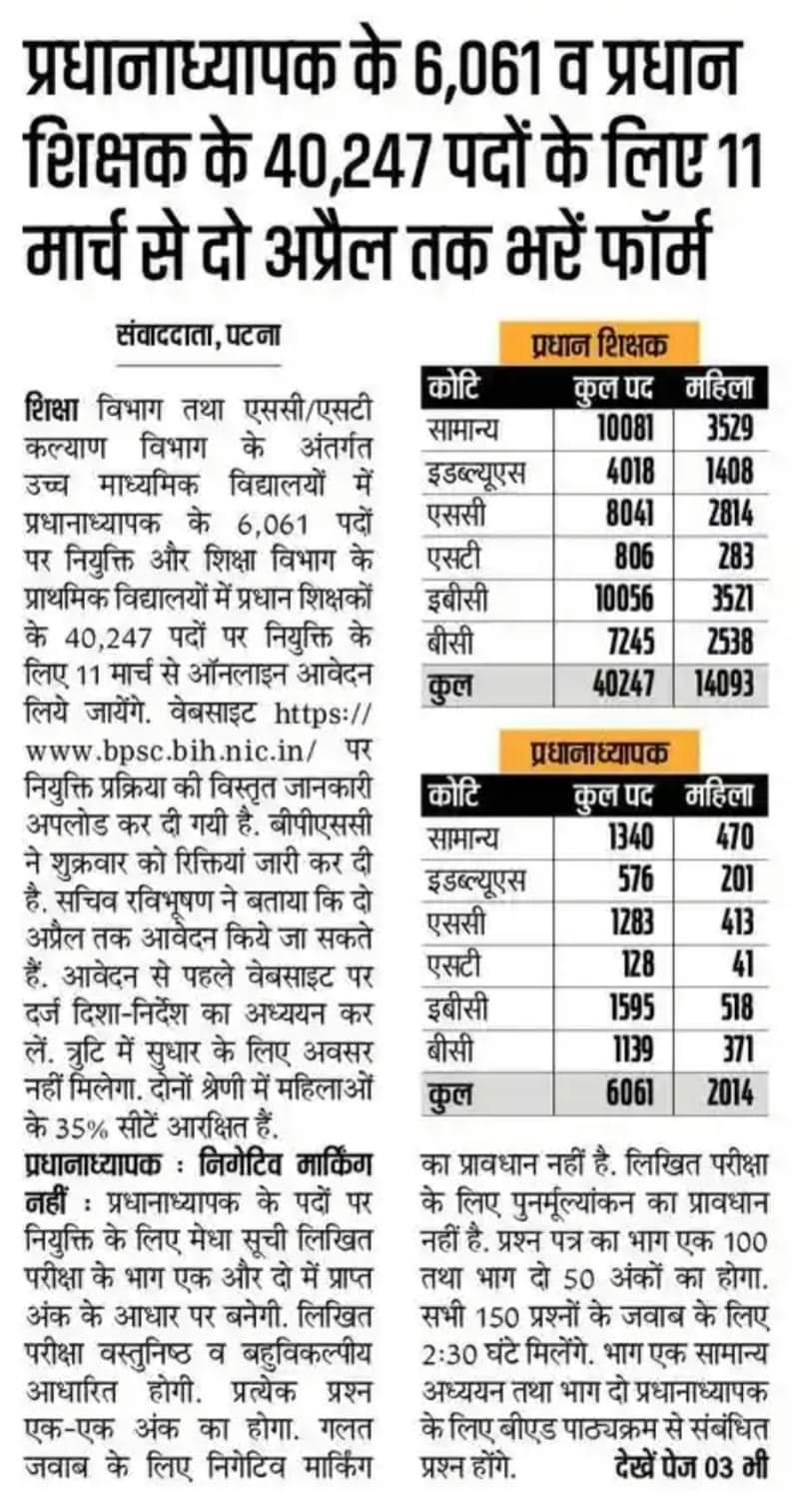 बिहार लोक सेवा आयोग द्वारा शिक्षक भर्ती परीक्षा तिथि जारी 15 मार्च और 16 मार्च को होगी परीक्षा