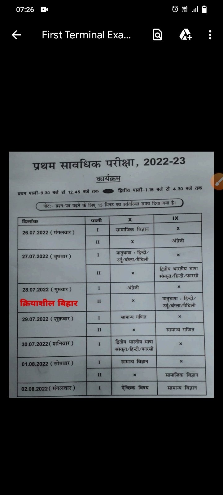 प्रथम सावधिक परीक्षा, 2022-23