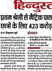 शिक्षा विभाग ने मौजूदा वित्तीय वर्ष में प्रथम श्रेणी से मैट्रिक पास वैसे छात्र-छात्राएं जो प्रथम श्रेणी से पास हुए हैं । साथ ही पिछड़ा वर्ग के अंतर्गत आते हैं उन सभी के लिए 423 करोड़ राशि जारी के संबंध में।