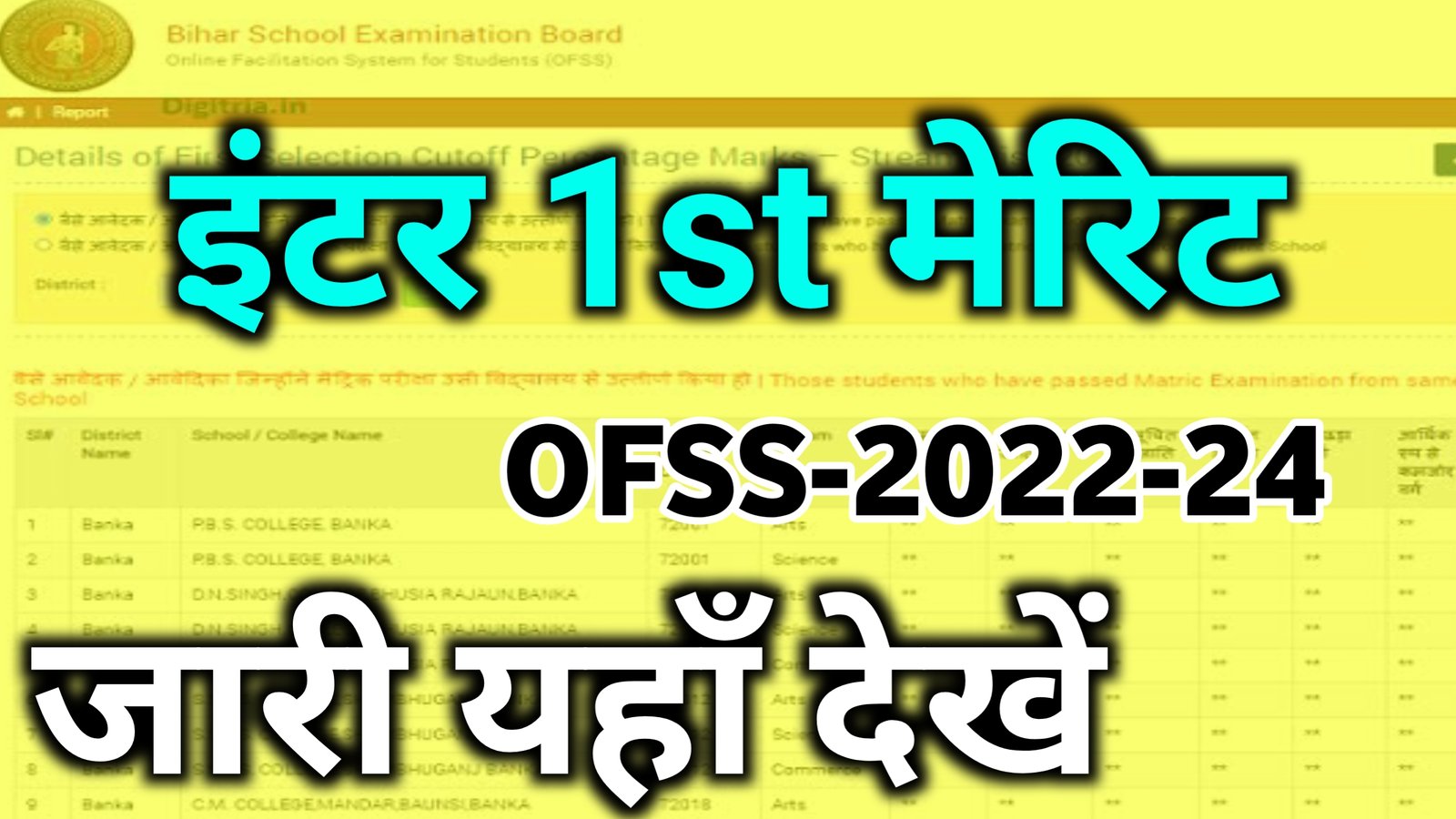 BSEB, biharboard OFSS 1st merit list 2022 ,इंटर नामांकन के लिए प्रथम मेरिट सूची यहां देखें,