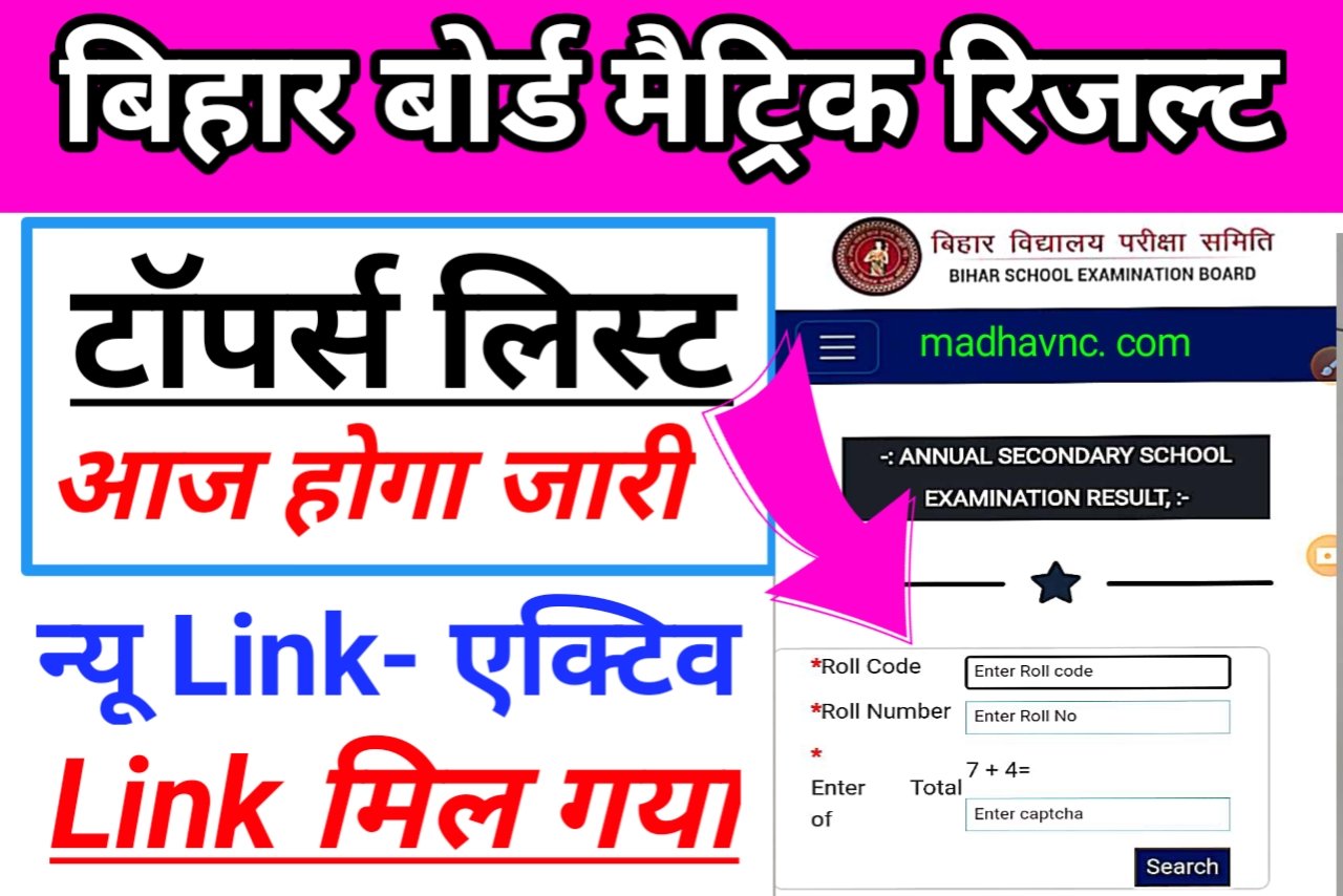 बिहार बोर्ड मैट्रिक रिजल्ट टॉपर लिस्ट आज होगा जारी , लिंक एक्टिव रिजल्ट अभी चेक करें