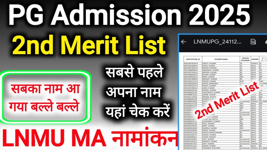 LNMU PG Admission 2nd मेरिट लिस्ट जारी 2025 | MA Admission 2025-27 Online Merit List Download Link @lnmu.ac.in