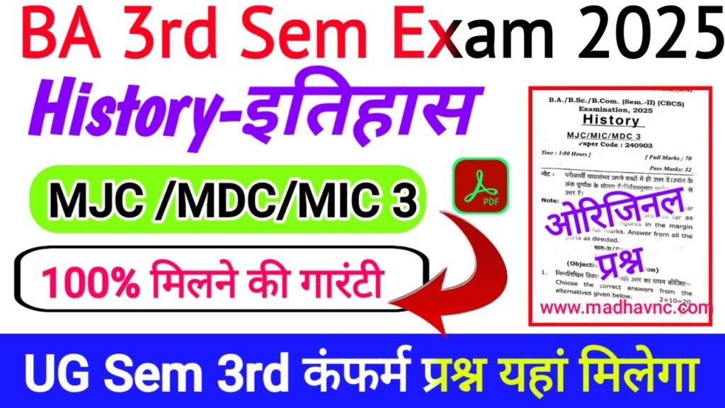 CBCS UG 3rd Sem History MJC /MIC/MDC-3 Guess Question Pepper | BA 3rd Sem History MJC 3 Viral Questions Papper