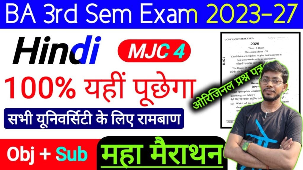 Hindi MJC 4 Questions Papper 2025 R CBCS UG 3rd Sem Exam 2023-27 | BA 3rd Sem Hindi MJC 4 Viral Questions Papper          Join For Latest News  WhatsApp  Join Now  Teligram  Join Fast  Facebook  Join Now  3rd Sem Live Class  Join Channel     BA 3rd Sem Hindi MJC 4 Viral