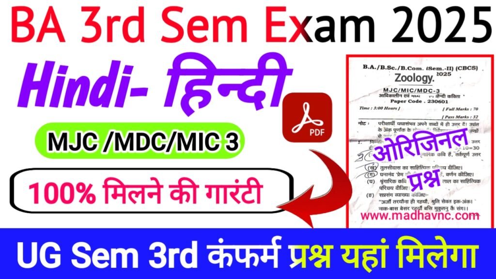 Hindi MJC 4 Questions Papper 2025 | CBCS UG 3rd Sem Exam 2023-27 | BA 3rd Sem Hindi MJC 4 Viral Questions Papper