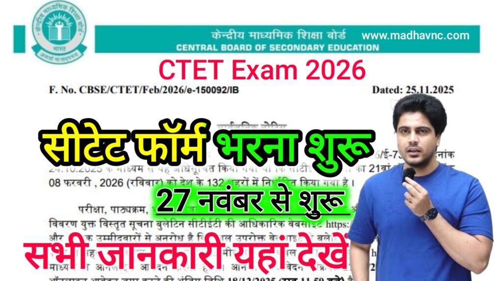 CTET Exam Feb 2026 | CTET परीक्षा फॉर्म भरना शुरू यहां देखें सिलेबस सहित जरूरी कागजात की सभी जानकारी @ctet.nic.in Read More »