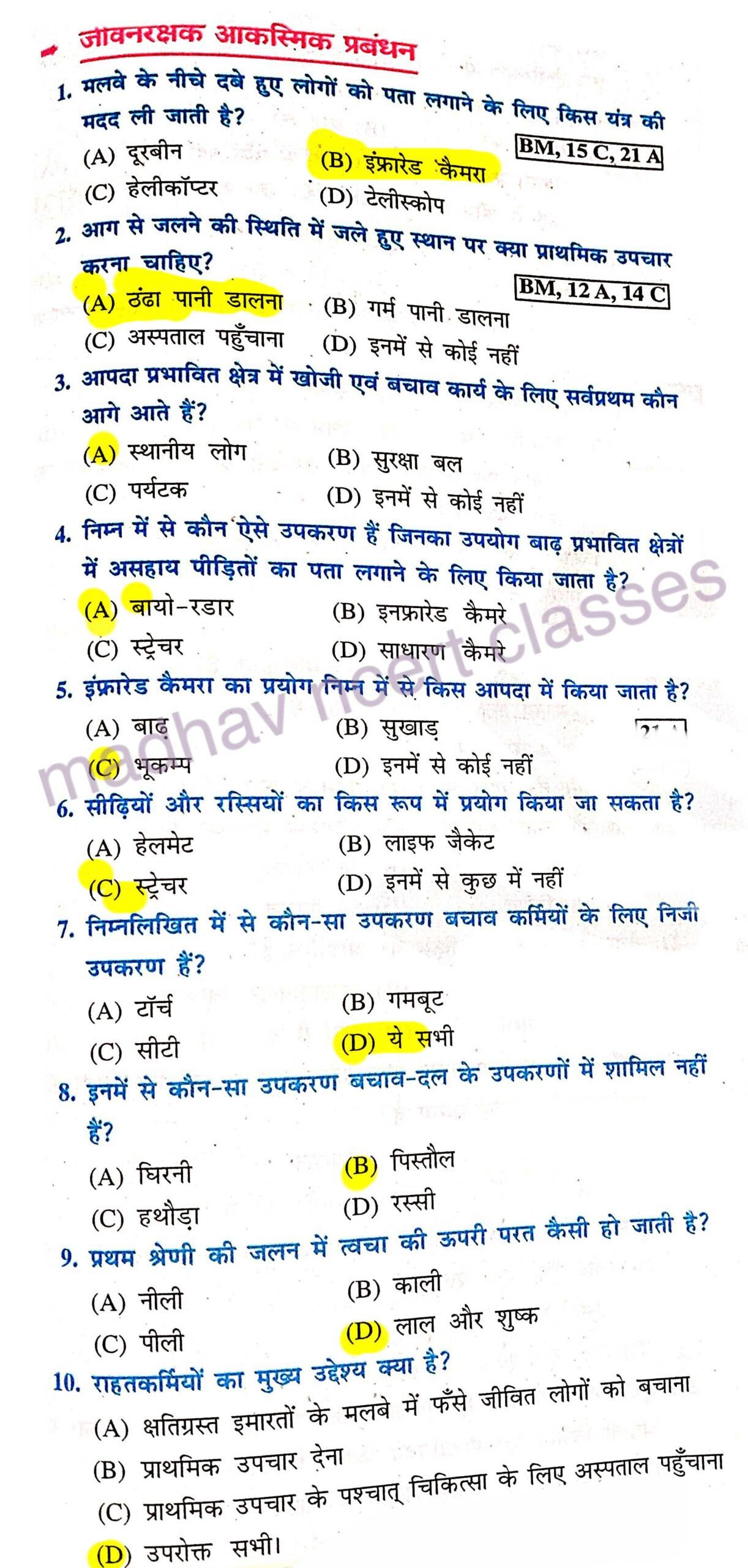 Class 10 ,social science chapter- 5 जीवन रक्षक आकस्मिक प्रबंधन में प्रबंधन सभी महत्वपूर्ण ऑब्जेक्टिव प्रश्न,