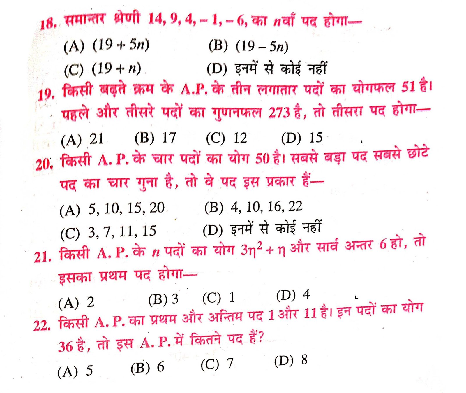 समांतर progression से बोर्ड परीक्षा में काफी प्रश्न पूछे जाते हैं Ap का संपूर्ण महत्वपूर्ण ऑब्जेक्टिव प्रश्न इस पोस्ट में दिया गया है जिसे पढ़कर कक्षा 10 के सभी छात्र छात्राएं बेहतर अंक परीक्षा में ला सकते हैं इसके लिए उन्हें सभी प्रश्न को बारीकी से समझ कर पढ़ना चाहिए।