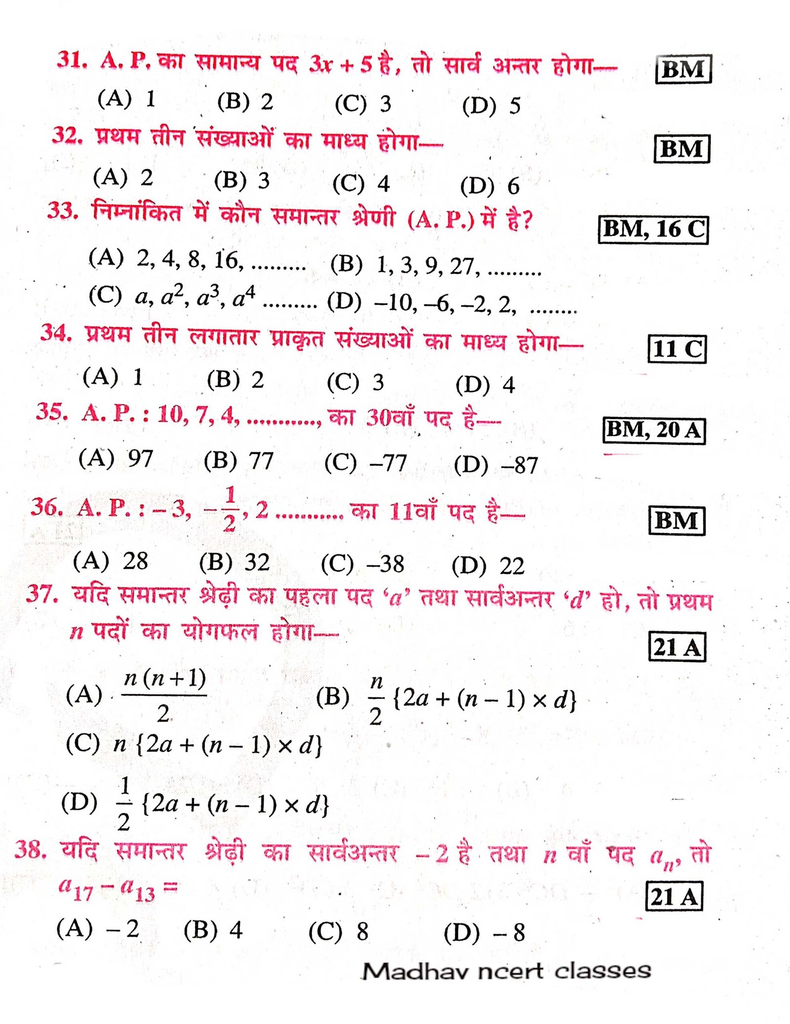 Class 10,math chapter-5 समांतर श्रेढियाँ important objective Question,