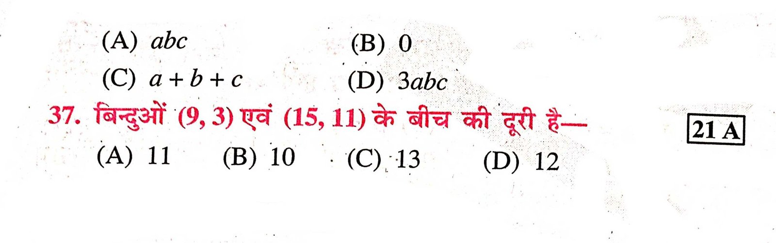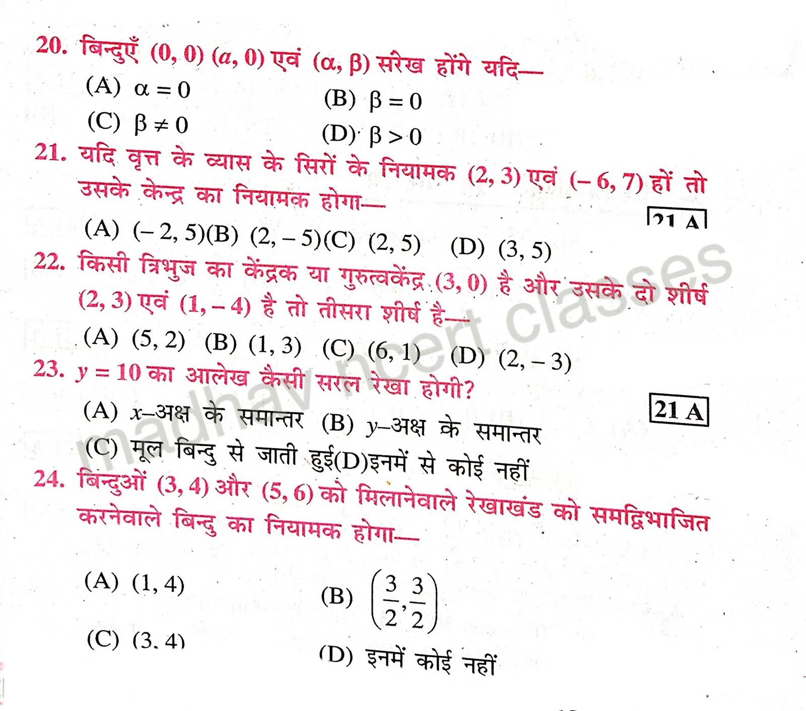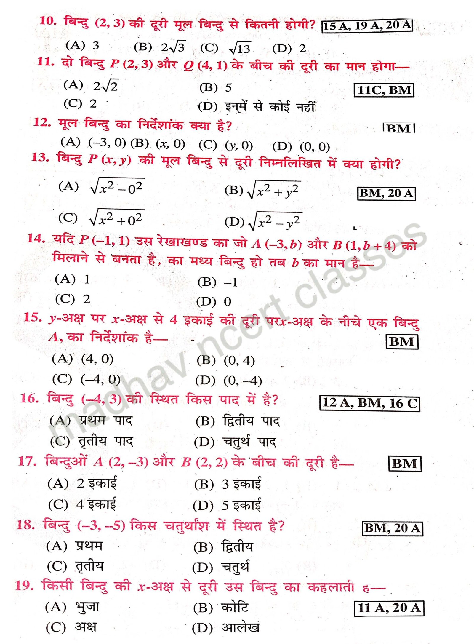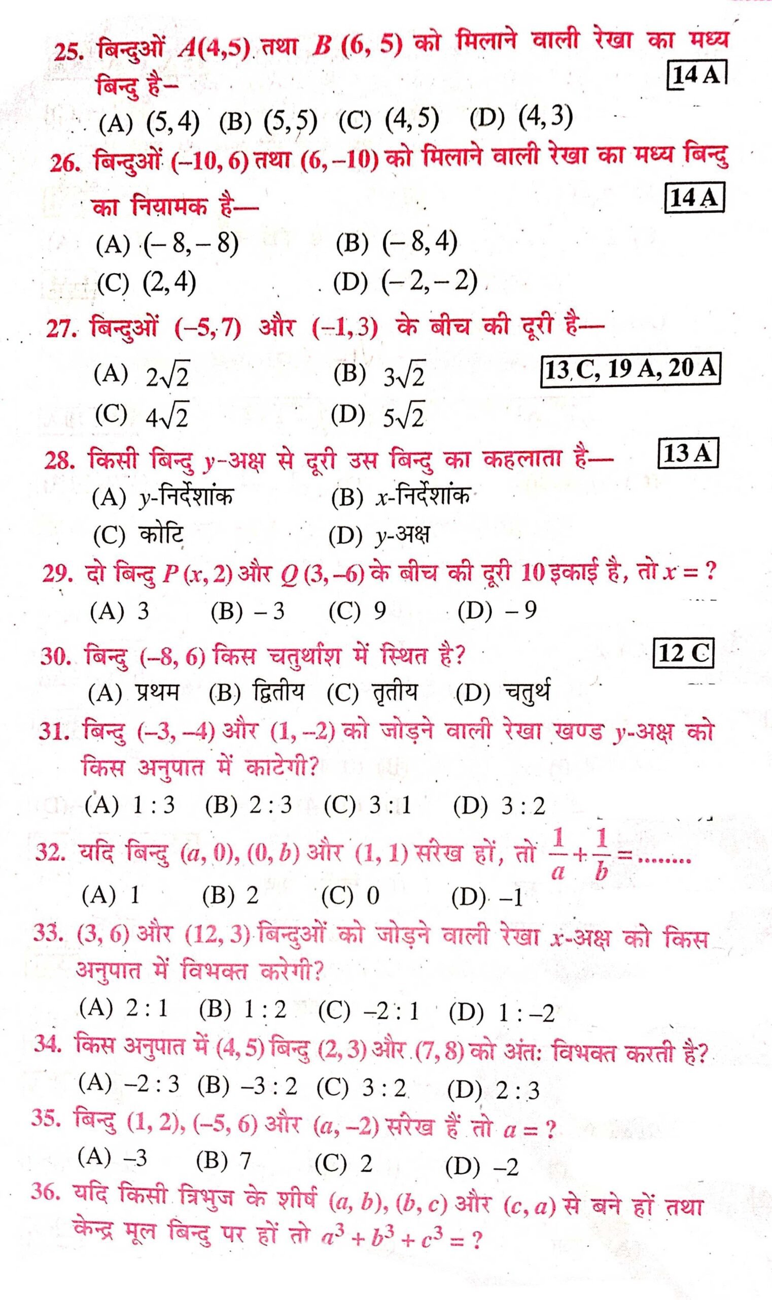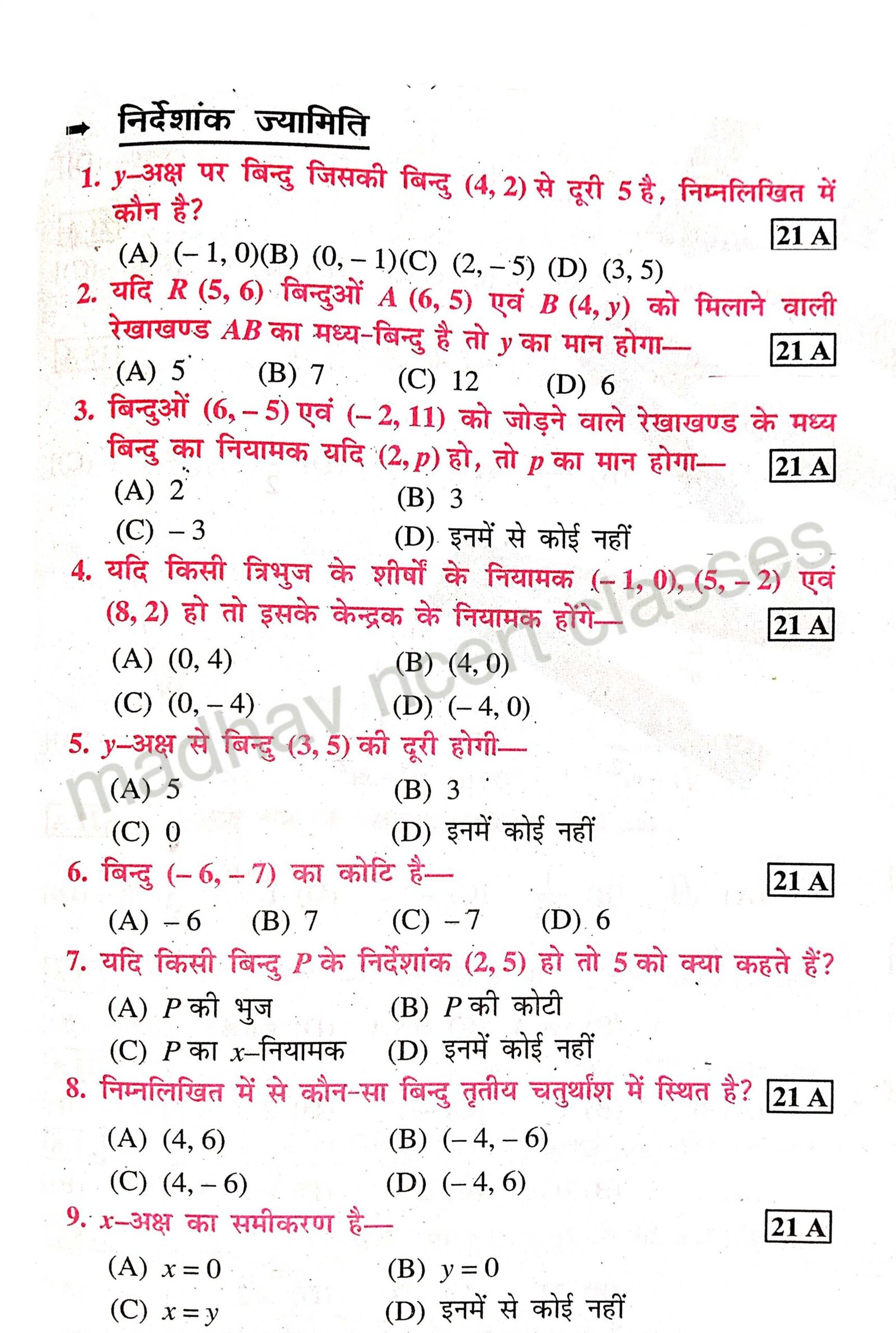 Class 10,math chapter-7 निर्देशांक ज्यामिति important objective Question