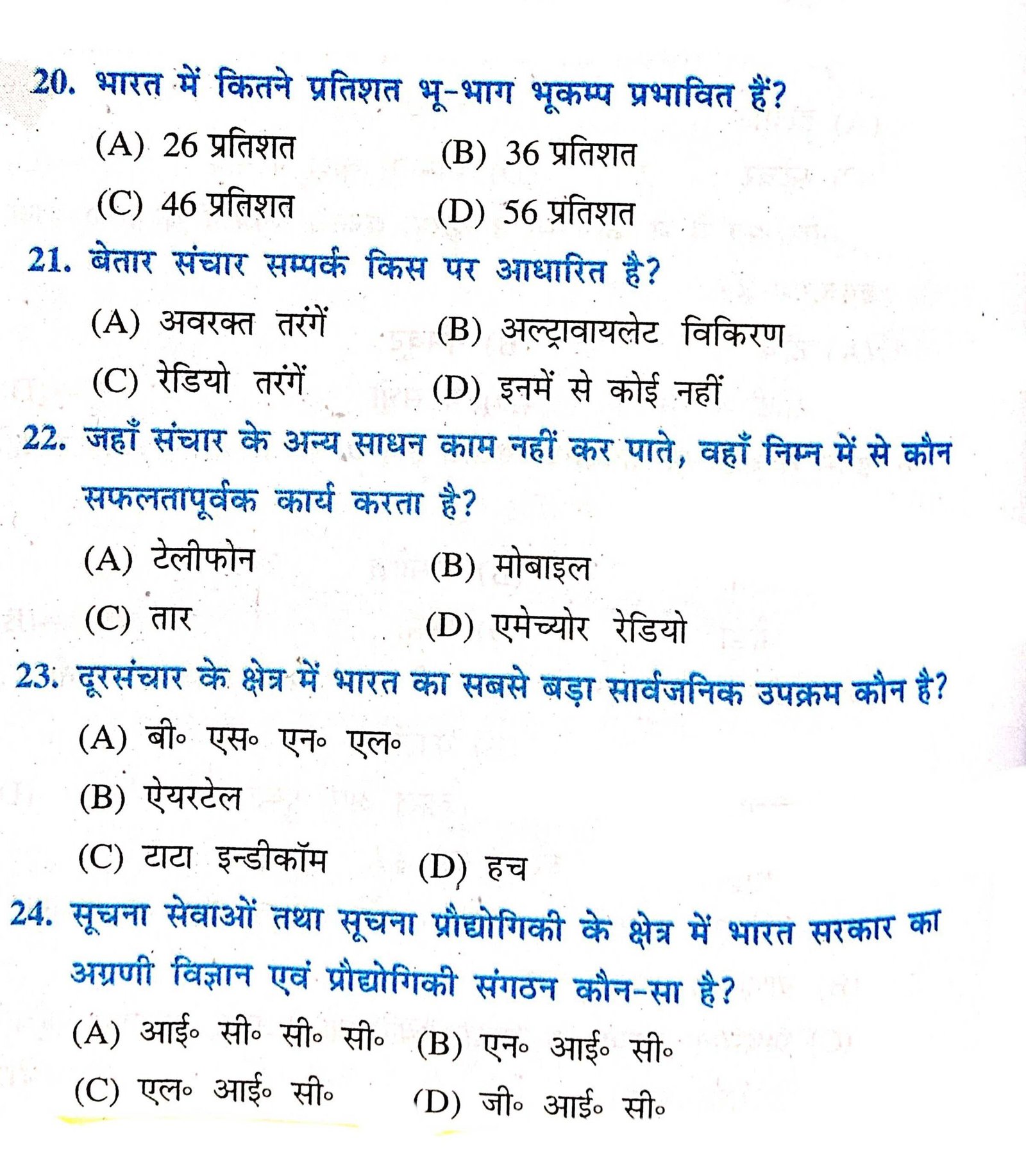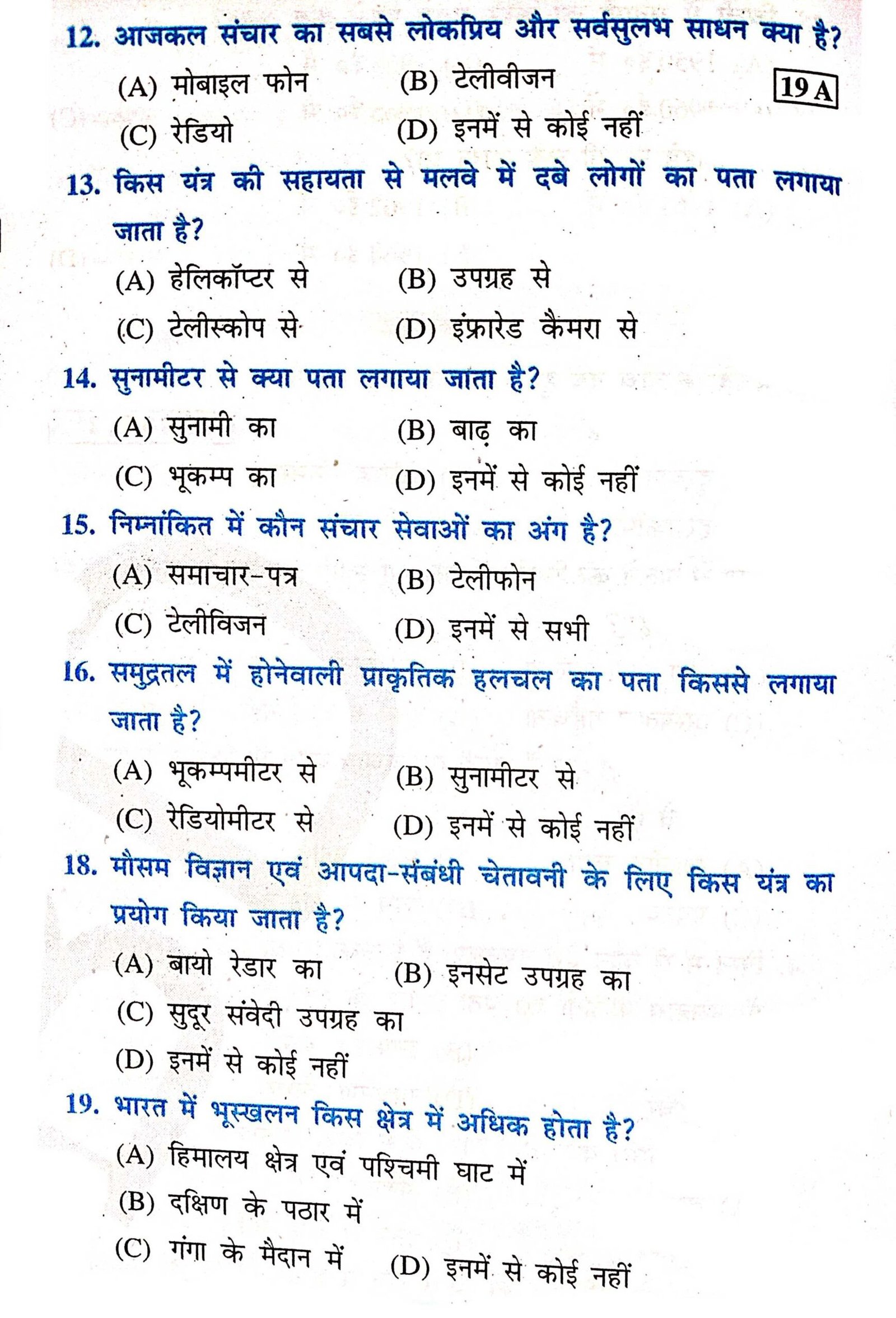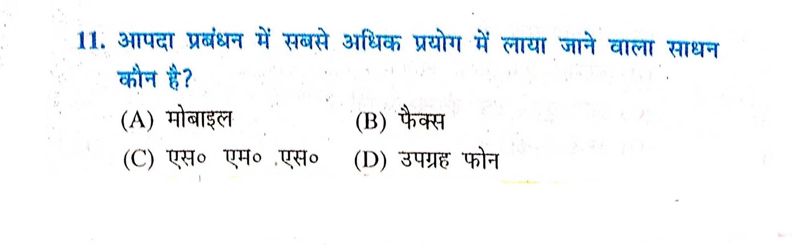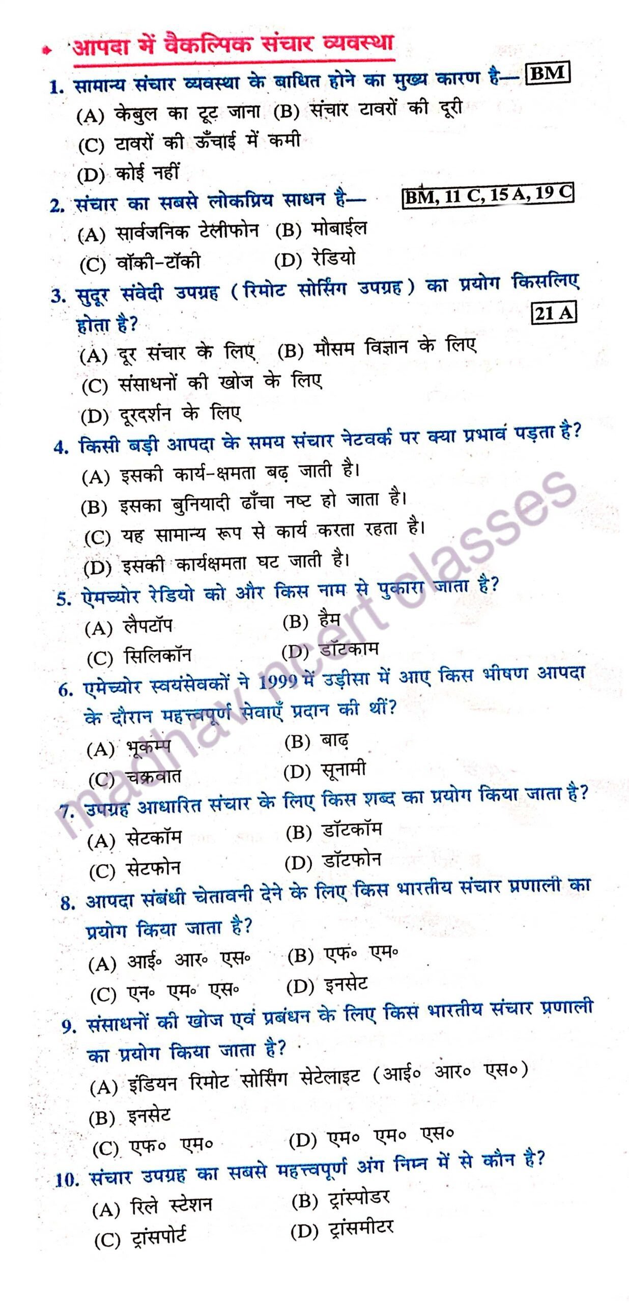 – Class ,10th आपदा प्रबंधन -,आपदा में वैकल्पिक संचार व्यवस्था important objective Question,
