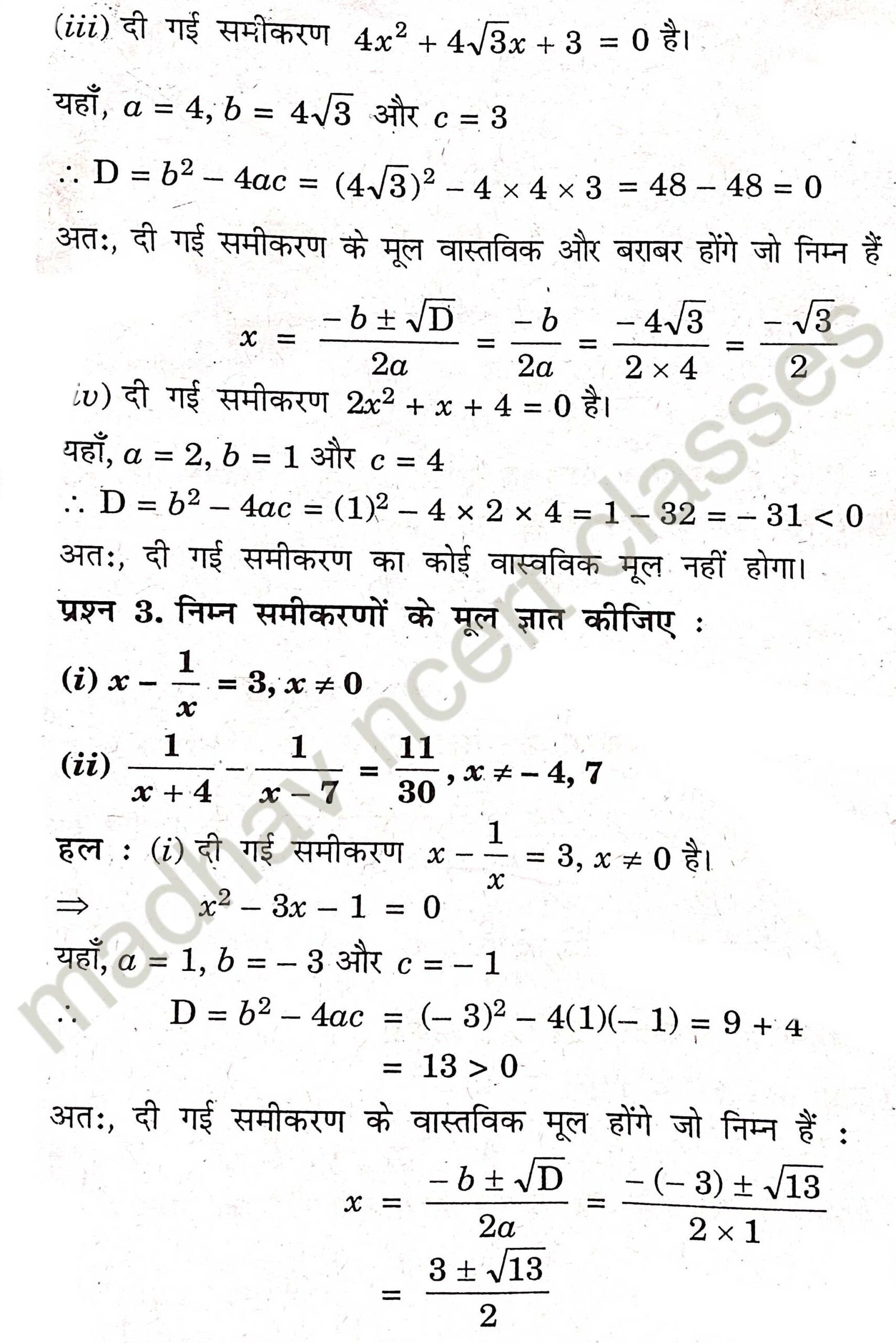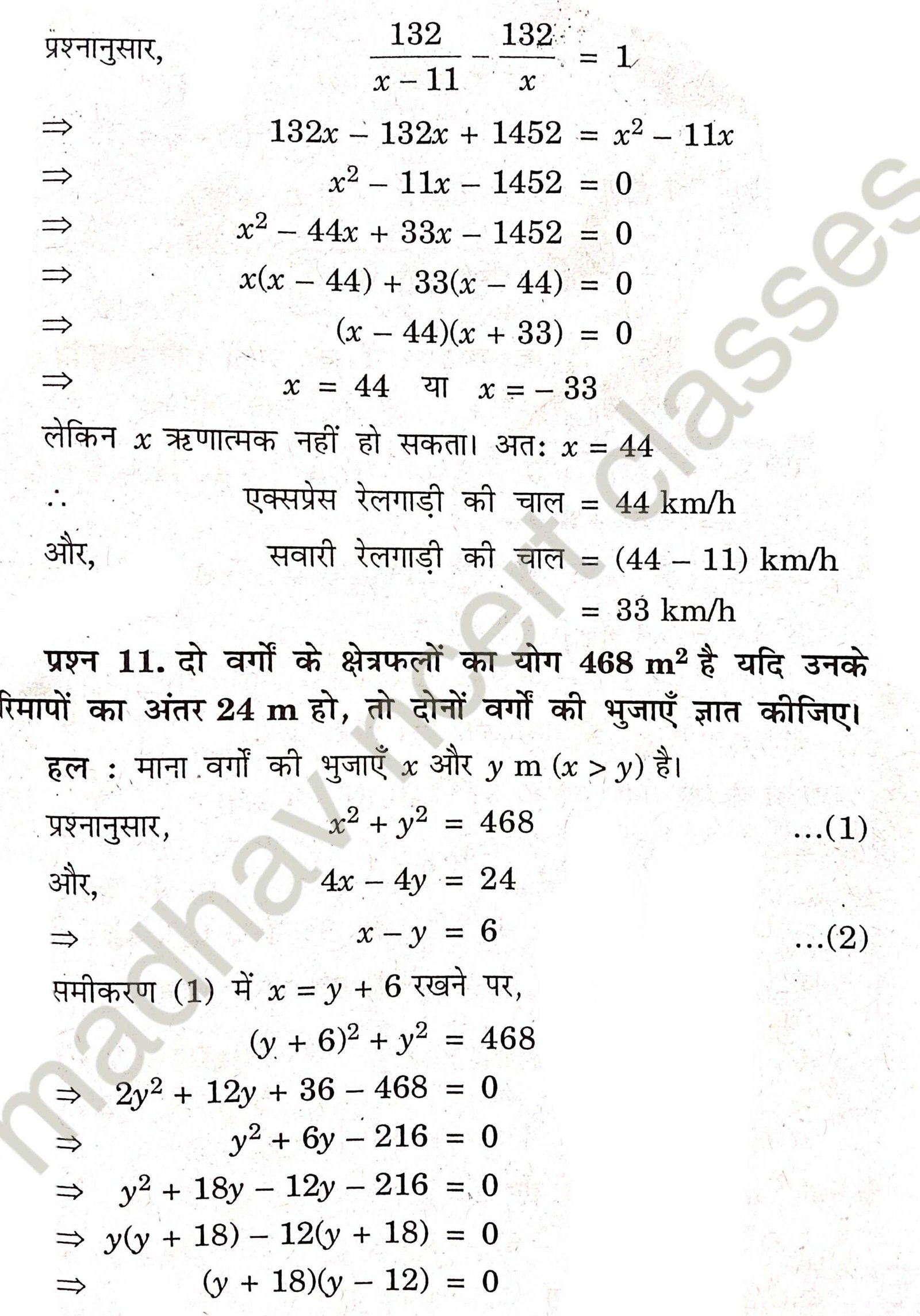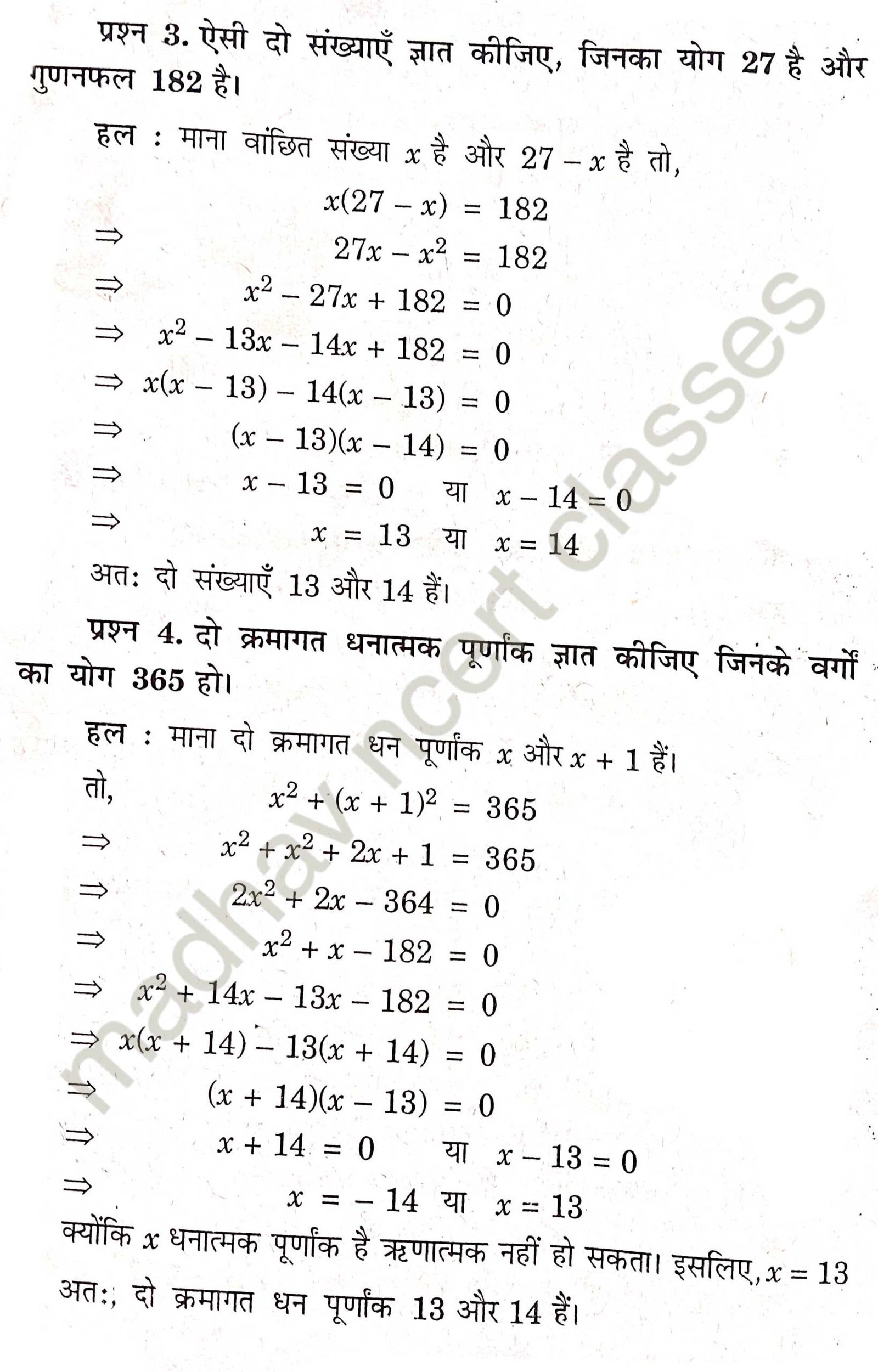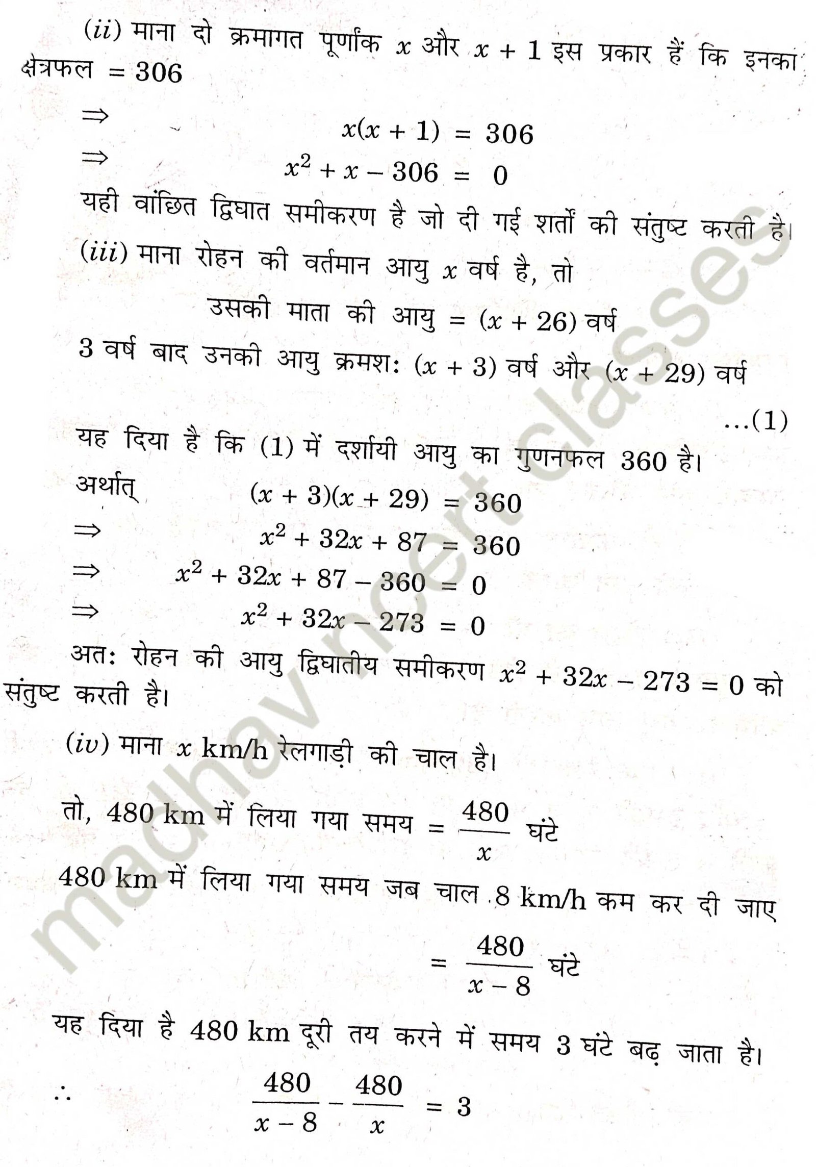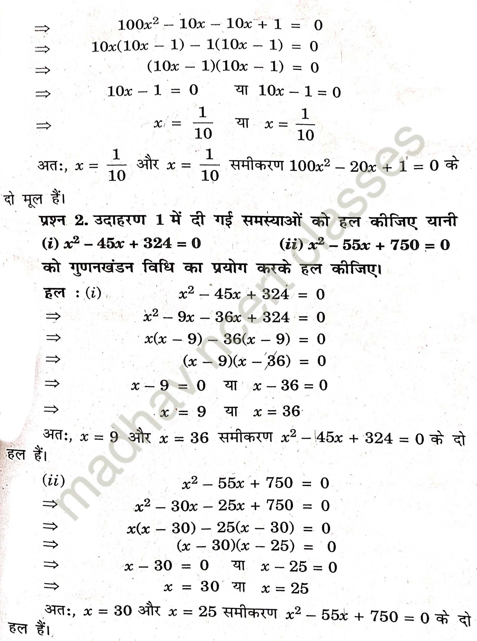 Class 10th Math in hindi द्विघात समीकरण का पूरा सब्जेक्टिव प्रश्न उत्तर फ्री में डाउनलोड करें