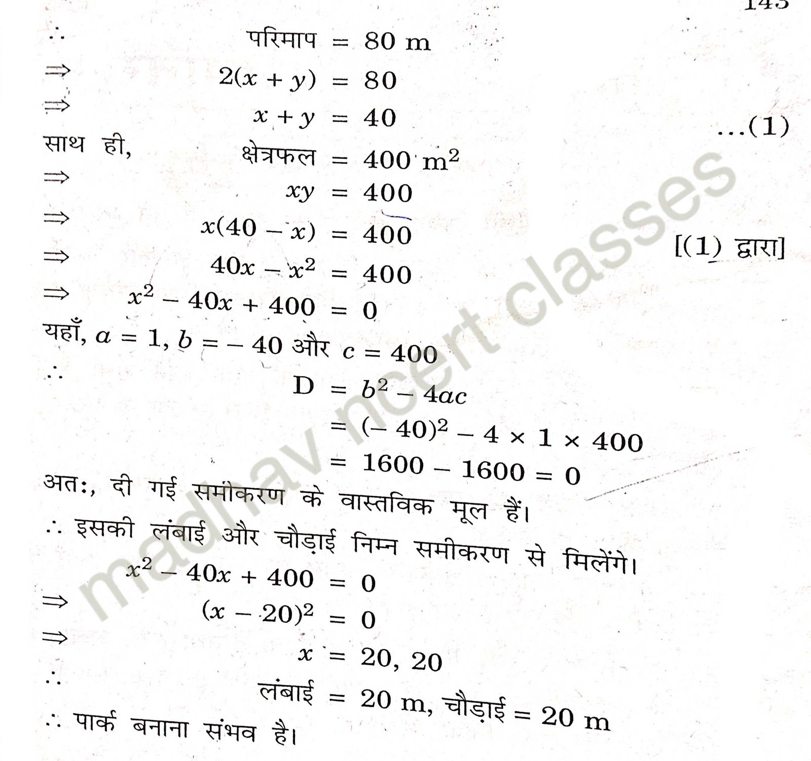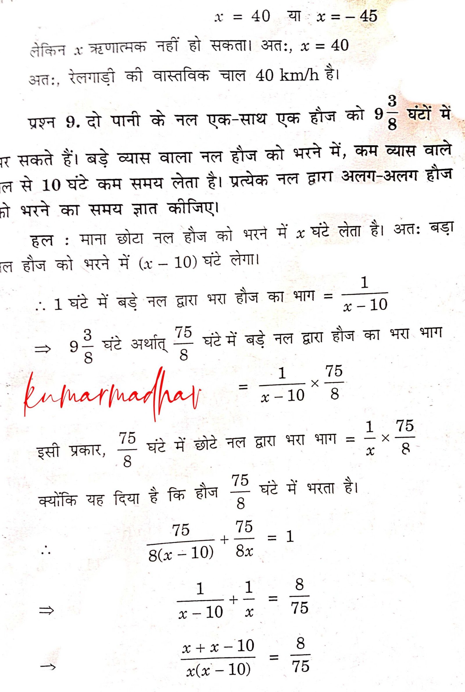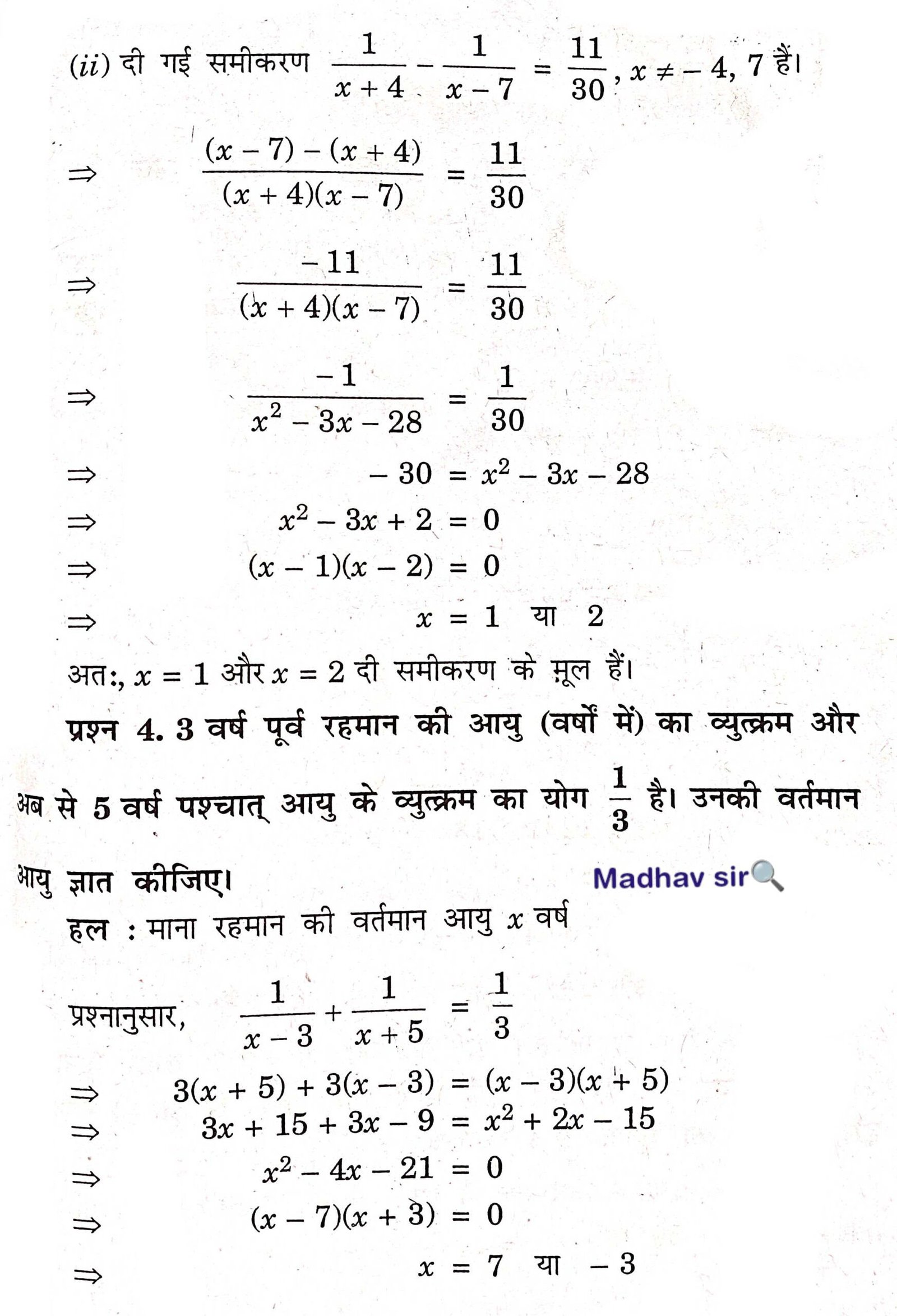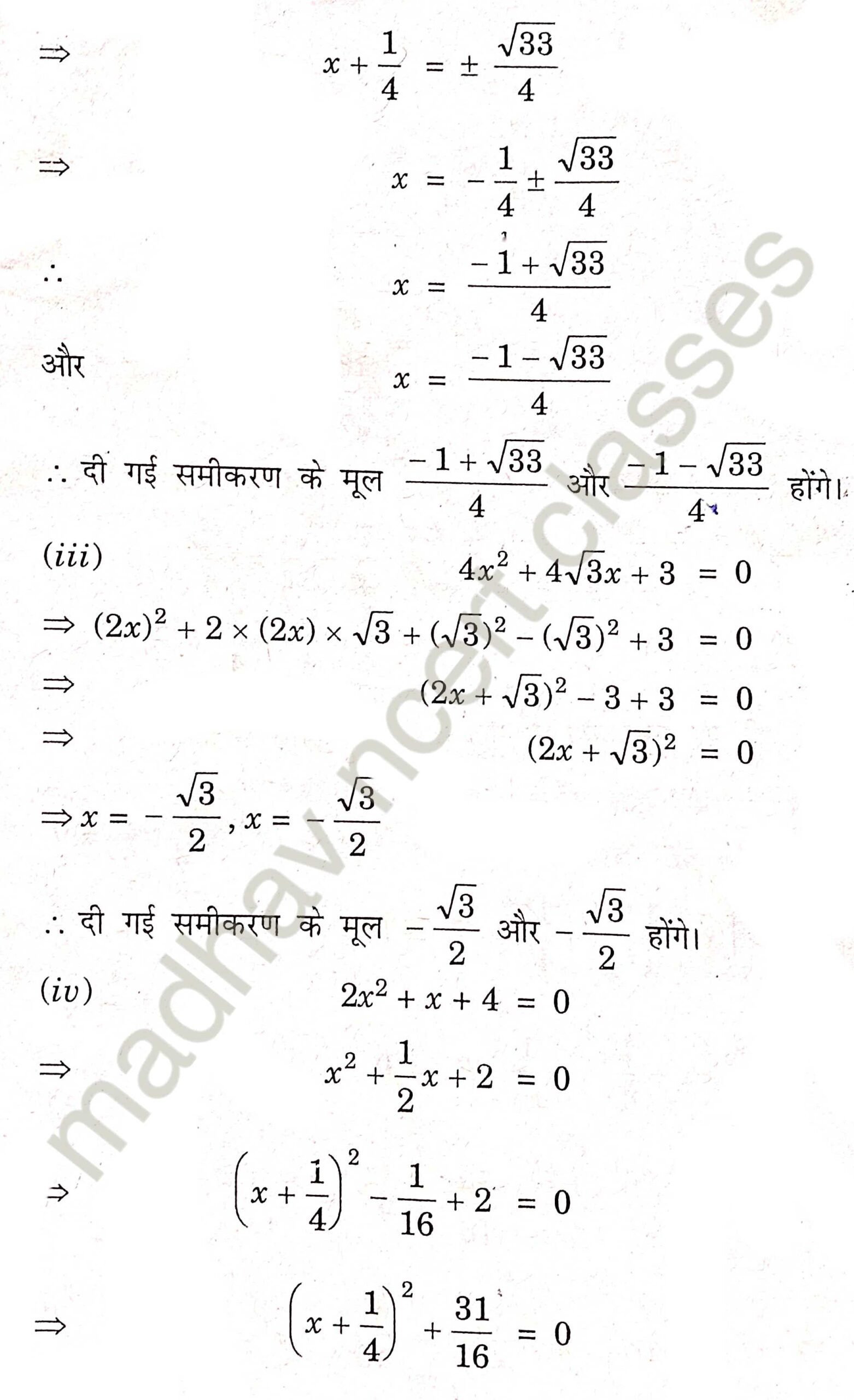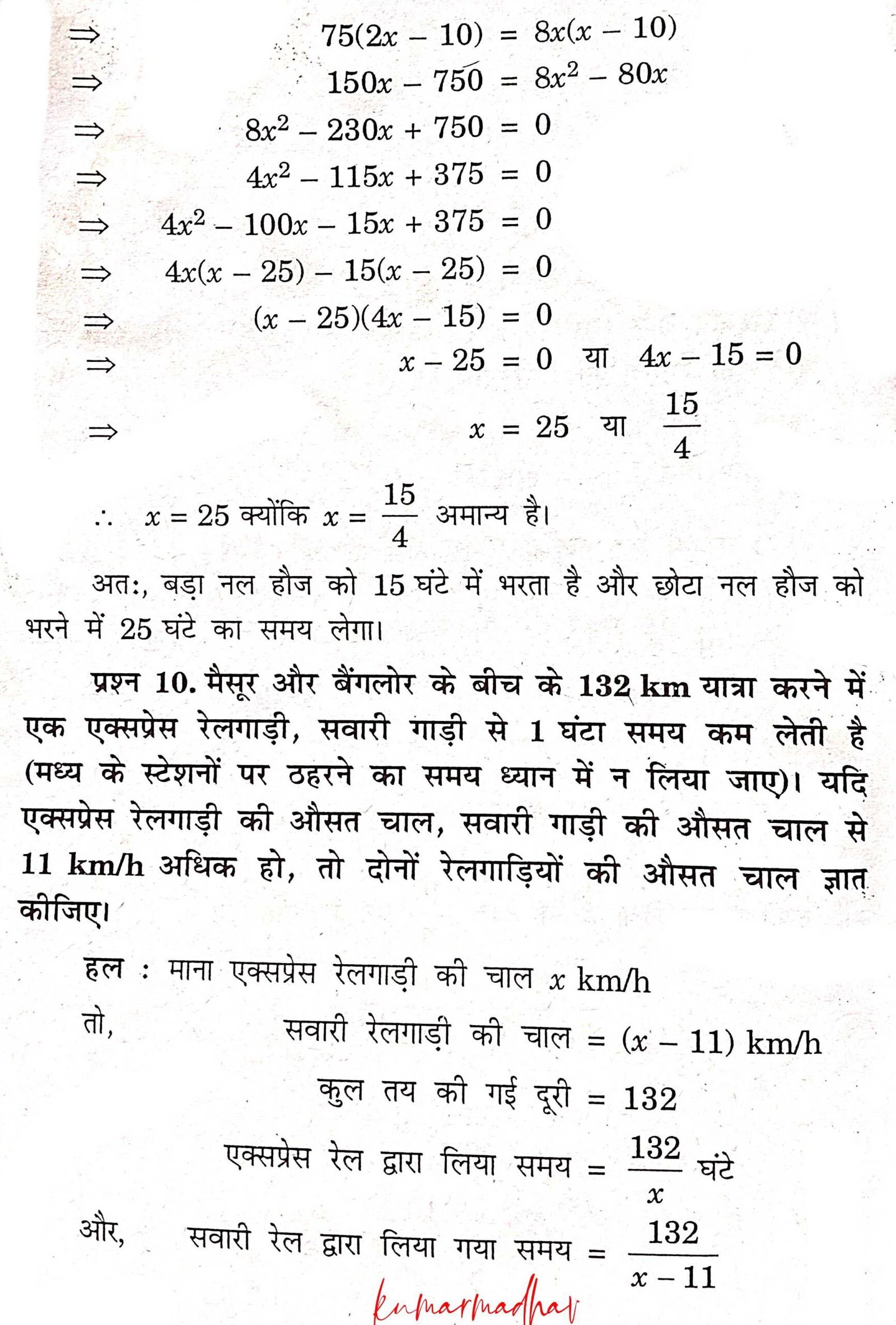 Class 10th Math in hindi द्विघात समीकरण का पूरा सब्जेक्टिव प्रश्न उत्तर फ्री में डाउनलोड करें