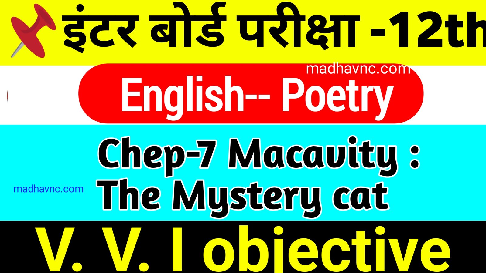 Class 12th, English chapter;-7 . MACAVITY: THE MYSTERY CAT objective question ।। 12th English-100 marks objective question with answer