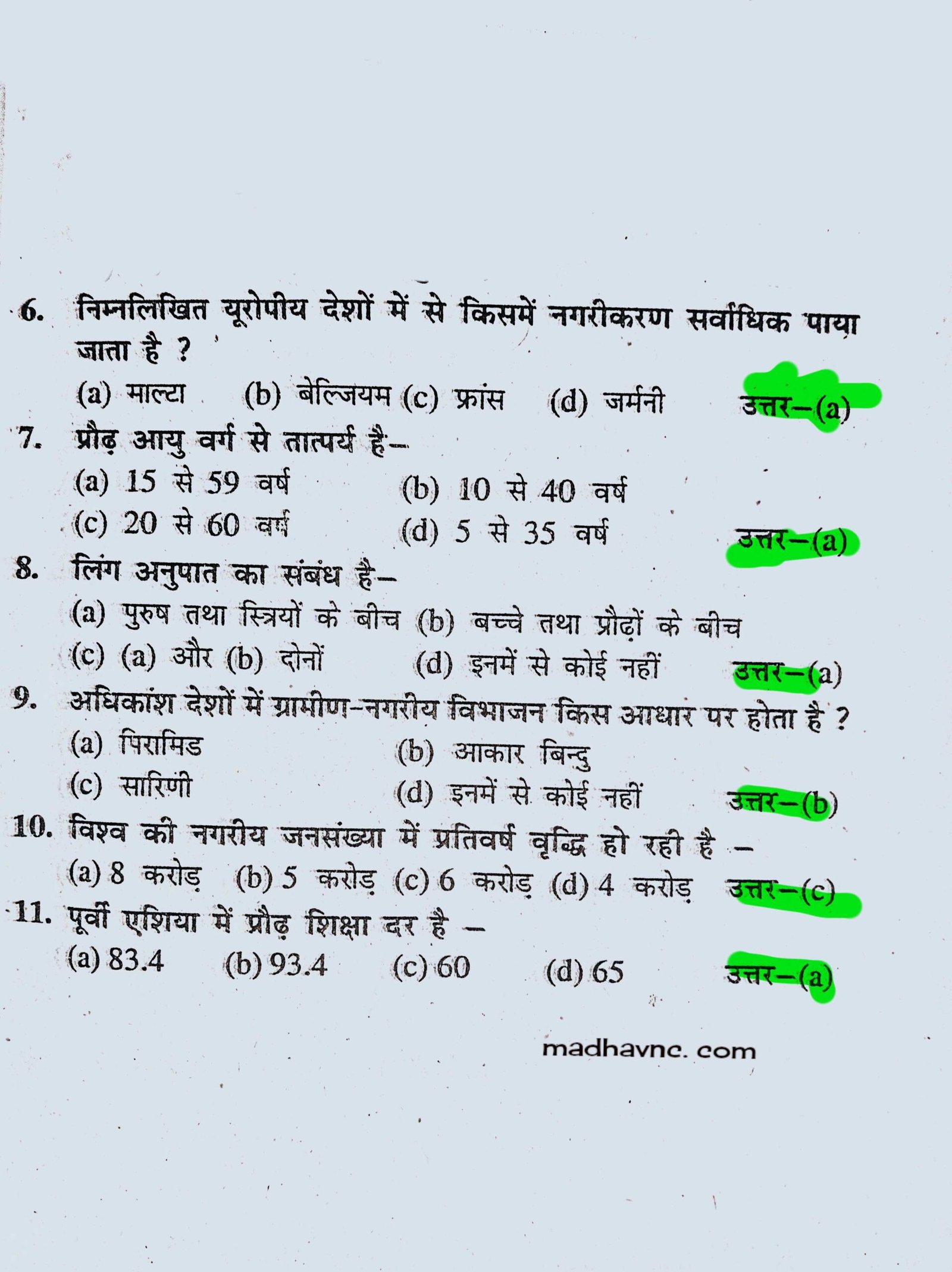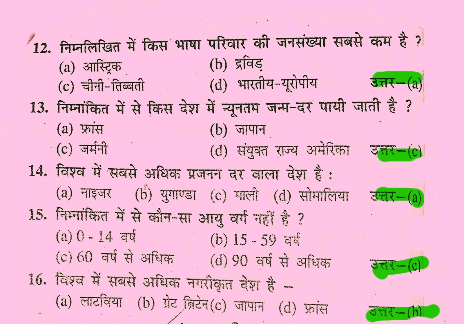Class 12th ,Geography, chapter- 3 जनसंख्या संघटन All important objective question