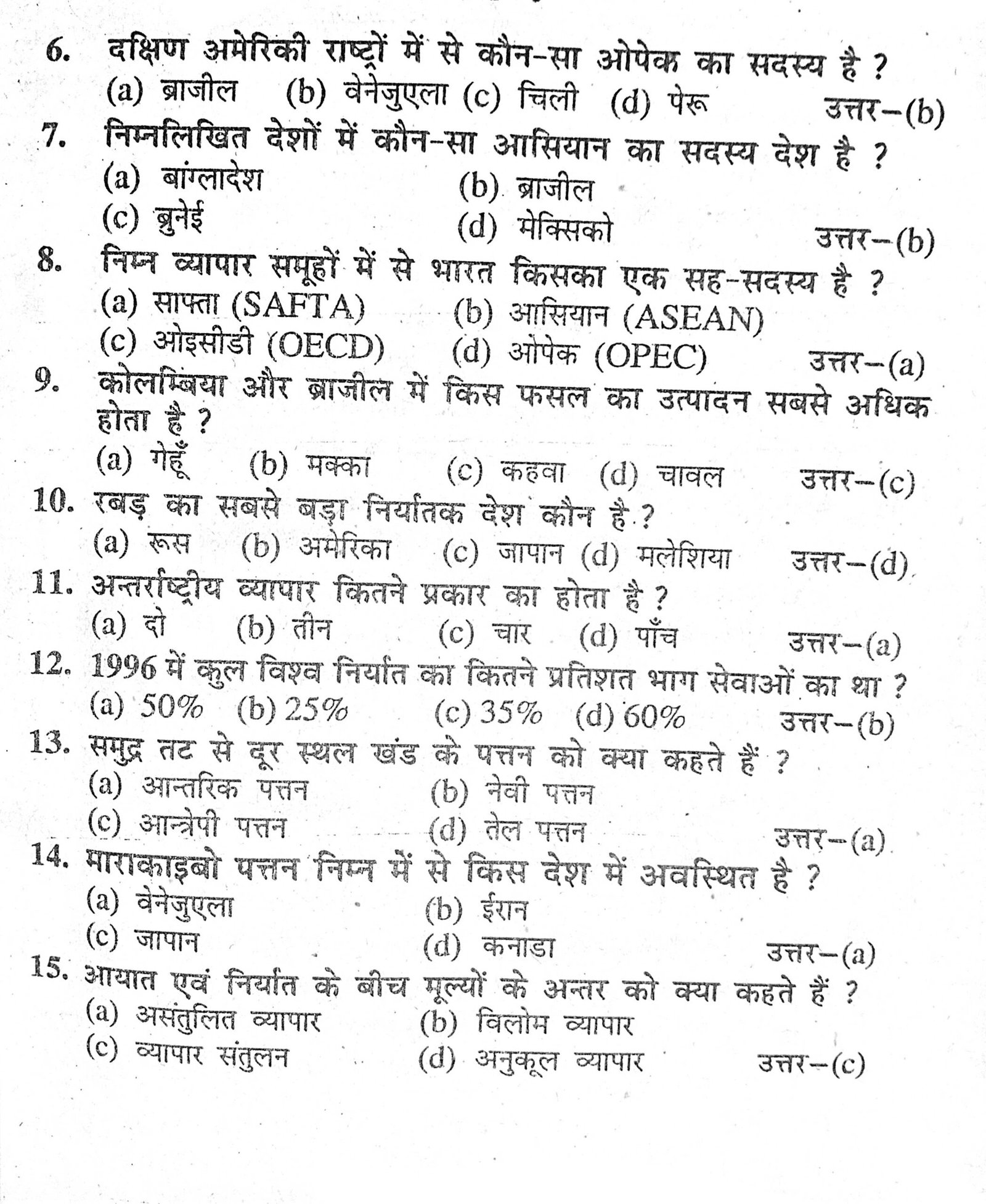 Class 12th ,Geography, chapter-9 अंतर्राष्ट्रीय व्यापार All important objective question