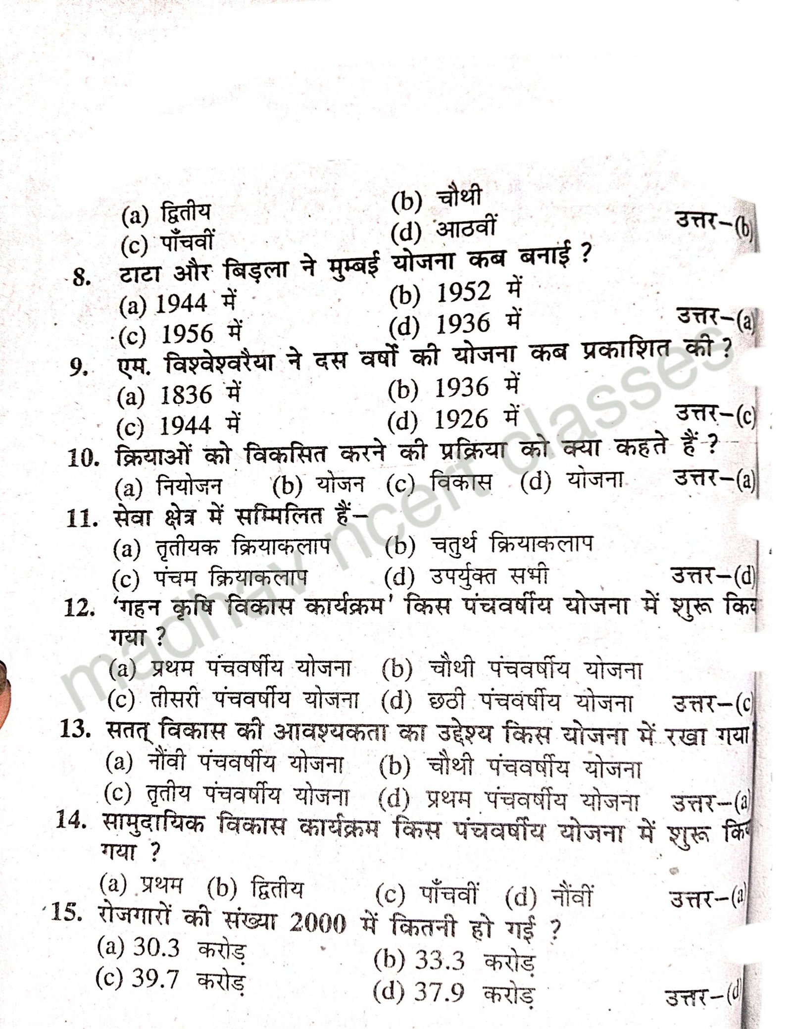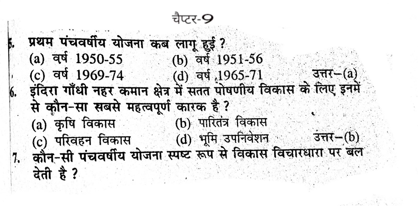 Class 12th Geography- chapter-9 भारत के संदर्भ में नियोजन और सतत पोषणीय विकास ऑब्जेक्टिव प्रश्न उत्तर